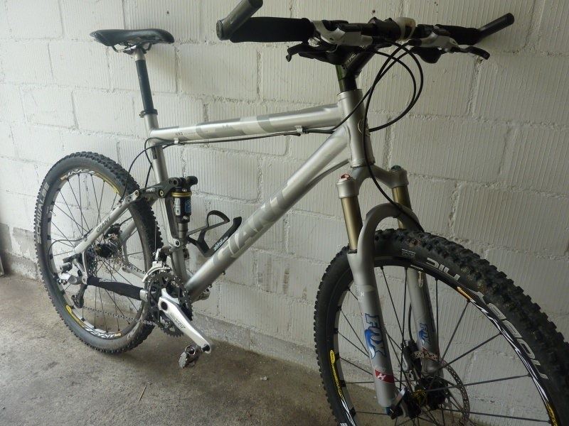 Aluminium CrossCountry Fully - Rahmen: AluxX SL 6013 Alu-Rahmen mit FluidForm und integriertem Steuersatz - disc only Gabel: Fox F80 Terralogic 80mm Federweg - Dämpfer: Rock Shox SID Dual Air, einstellbare Zug/ Druckstufe - Schaltung: Shimano XT 3x9 Gang - Bremsen: Shimano XT hydraulische Scheibenbremse 160mm - Laufräder: Mavic Crosstrail Laufräder - Kurbel: Shimano XT - Vorbau/Lenker: Thomson Komponenten Alu/Carbon Sattelstütze: Titec - Racing Komponenten Sattel Selle Italia Alu Farbe: Silber Rahmenhöhen: L (20,5\") Pedale: Allu Klick Shimano