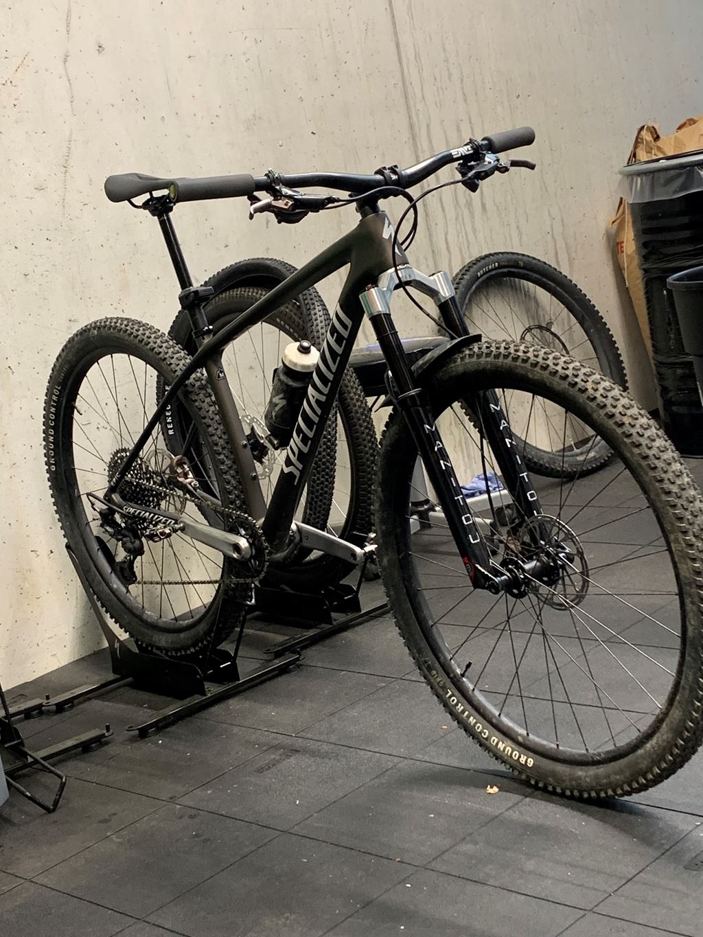 Hier mein hübsches Epic mit Manitou R8, Reverb, mechanisch 12fach und polierten XT Kurbeln