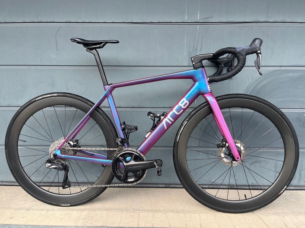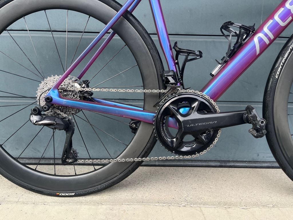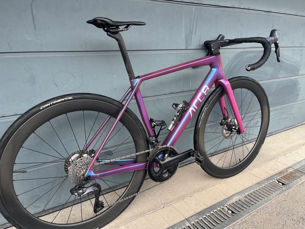 - Verkauf mein Custom ARC8 Escapee. Der Lach verändert sich je nach Lichteinfall und wurde so nur 1x verkauft. Das Rennvelo wurde nur bei trockenen Bedingungen gefahren und hat rund 8'000km. Der Antrieb ist Shimano Ultegra Di2 12fach (Kassette ist Dura Ace). Die Felgen sind von ARC8 und haben eine Höhe von 50mm. Die Kettenblätter wurden im letzten Winter das letzte Mal gewechselt. Die Kette im letzten Oktober. Kurbel: 50-34 / 172.5 Kassette: 11-34 Laufradsatz: 50mm Felge / 28mm Reifen Disc: 140/160 Das Rennvelo kann gerne auch Probegefahren werden.