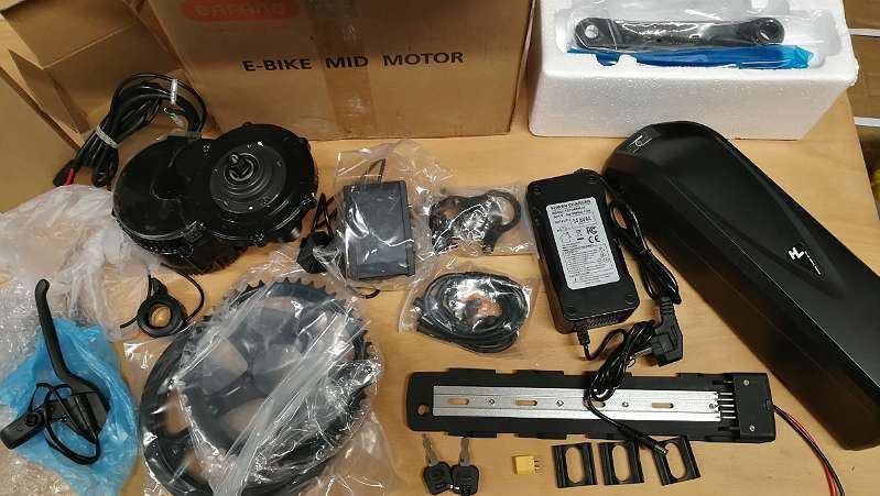 - Newly packed. A strong e-bike mid-engine. The BBS02B; 750W 48V display COLOR 860C. - Bafang BBS02B mid-engine 68-73mm - display COLOR 860C - speed sensor - sprocket 44T - thumb throttle lever - hydraulic brake sensors - wiring set - battery 48V 17.5Ah (840Wh; 13S5P) Panasonic/Sanyo NCR18650GA cells - charger 4A 1 year warranty!