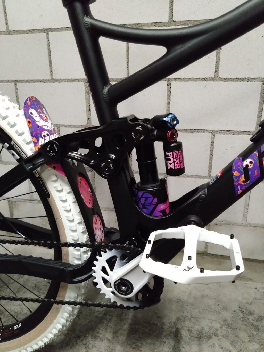 - Rune V3 Size L mit Decals von Become Unique "Dia de los muertos" mit passendem Mudguard Verkauft wird nur der Rahmen mit Dämpfer, nur wenige Kilometer gelaufen.