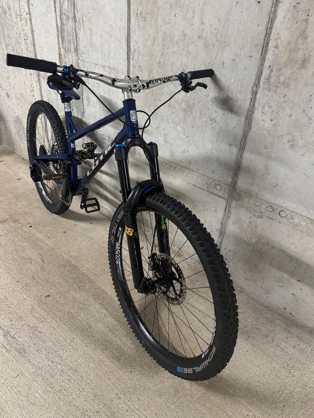 - Zum Verkauf steht ein Cotic Rocket Max, das britische Stahlfully der 3ten Generation in 29 Zoll. Grösse L Ich bin mich am verkleinern und deshalb müssen mich in nächster Zeit einige von meinen Bikes verlassen. Das Bike wurde komplett neu aufgebaut mit z.T. gebrauchten aber auch vielen neuen Komponenten. Rahmen: Reynolds 853 Stahlrahmen mit Aluhinterbau Gabel: Fox 38 Float, Performance 160mm, neu Dämpfer: Cane Creek DB Air CS 160 mm Kurbel: Sram GX, neu Kassette: Sram XG 1275, 10-50T Schaltwerk: Sram X1 AXS eagle, neu Trigger: Sram AXS Sattelstütze: Sram AXS 150mm Sattel: 66sick, espacio libre, neu Vorbau: Aertime limited edition, neu Lenker: Aertime limited edition, neu Bremsanlage: Magura MT7 mit Magura Scheiben v220, h203 Radsatz: DT Swiss M502 Felgen mit Korg Zero Naben Reifen: Schwalbe Nobby Nic 29, tubeless aufgebaut Das Bike kommt direkt ab kleinem Service, Bremsen entlüftet, Schaltung neu eingestellt. Muss in Teufen abgeholt werden oder nach Vereinbarung ist evt. auch eine Lieferung möglich. Preis verhandelbar.