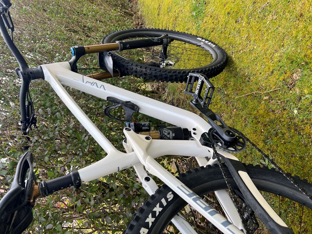 - Super Gelegenheit und Angebot. Bike ist absolut neuwertig. Grösse: XL ( Körpergrösse ca. 180 bis 190cm) Neupreis: CHF 5990.- Modell: 2025/26 Stabil, agil und superleicht – das ist unser kompromisslos leistungsstarkes Stereo ONE77 C:68X SLT. Die ausgeklügelte Kinematik unseres C:68X® Carbonrahmens arbeitet optimal mit der Fox 36 Float Factory Federgabel und dem Float X2 Factory Dämpfer Hand in Hand. Der elektronische, superrobuste 12-Gang X0 Eagle Transmission Antrieb von Sram schaltet präzise, leicht und sicher von Gang zu Gang. Gebremst wird, wenn überhaupt, mit den leistungsstarken hydraulischen Code Ultimate Scheibenbremsen, ebenfalls aus dem Hause Sram. Dazu sorgen ein Newmen Phase 30 Carbonlaufradsatz mit Schwalbe Aerothan Schläuchen – und natürlich unsere leichte Vorbau-Lenker-Einheit aus Carbon – für geringes Gewicht, und zwar ohne Abstriche in Sachen Performance. Fazit: Mit diesem Freerider ist die nächste Bestleistung zum Greifen nah!Etwas Perfektes noch besser machen? Mit dem Stereo ONE77 C:68X Rahmen ist uns das gelungen! Das erste Highlight ist sein (geringes) Gewicht: lächerliche 2.3 kg – der Unterschied wird bei Kletter- und Downhill-Passagen deutlich. Dazu kommen ein Flip-Chip und zwei Montageoptionen für wahlweise einen Luftfeder- oder Stahldämpfer. Dadurch lässt sich die Federung flexibel an individuelle Vorlieben und Anforderungen anpassen. Außerdem haben wir dem Bike Lagerschalen zur Winkelverstellung spendiert, wodurch sich der Steuerrohrwinkel auf 63.8° und 64.4° einstellen lässt. Dazu ein geschraubtes Tretlager für ein Plus an Vielseitigkeit und Stabilität. Übrigens, es gibt bewusst keinen Stauraum im Rahmen, damit das Gewicht niedrig und die Robustheit hoch bleibt. Was es aber gibt, ist eine Aufnahme für die Montage des eigenen Tools am Unterrohr. Und? Bereit? Dann ab auf den Berg und los! RAHMEN RAHMEN C:68X® Monocoque Advanced Twin Mold Technology, Air/Coil Shock Mount Flip-Chip, ISCG, Boost148, UDH™, 170mm travel FARBE metallicwhite´n´grey GRÖSSEN 29: M, L, XL, XXL STEUERSATZ ACROS AZF-675, ICR (Integrated Cable Routing), Top Zero-Stack 1 1/2" (ZS 56mm), Bottom Zero-Stack 1 1/2" (ZS 56mm), Fiber Inserts for Angle Adjustment FAHRWERK GABEL Fox 36 Float Factory GRIP X2, High/Low Speed Rebound & Compression, Tapered, 15x110mm, 160mm, Kashima Coated DÄMPFER Fox Float X2 Factory, 230x65mm, High/Low Speed Rebound & Compression w/ 2-Pos. Lever, Kashima Coated DÄMPFER HARDWARE Top: 40x8mm, Bottom: 22.2x8mm COCKPIT LENKER-/VORBAUEINHEIT CUBE Stereo Carbon Cockpit System GRIFFE ACID Disrupt, Soft Compound ANTRIEB & BREMSE SCHALTWERK Sram X0 Eagle AXS™ Transmission, 12-Speed, Electronic Shifting System KETTENFÜHRUNG MRP 1X Chain Guide SCHALTHEBEL Sram AXS™ Pod Ultimate Controller BREMSE Sram Code Ultimate Stealth, Hydr. Disc Brake (200/180) INNENLAGER Sram DUB MTB Wide, 73mm BSA KURBELGARNITUR Sram X0 Eagle™ Transmission DUB, 30T KASSETTE Sram XS-1295, 10-52T KETTE Sram X0 Eagle™ Transmission LAUFRÄDER LAUFRADSATZ Newmen Phase 30 light/base Carbon, 28/28 Spokes, 15x110mm/12x148mm, Tubeless Ready REIFEN VORNE Maxxis Assegai, MaxxTerra/EXO+, Tubeless Ready, 2.5 WT REIFEN HINTEN Maxxis Minion DHR II, MaxxTerra/EXO+, Tubeless Ready, 2.4 WT AUSSTATTUNG SATTEL ACID Nuance SLT X Carbon SATTELSTÜTZE Fox Transfer Factory 31.6mm, Kashima coated SATTELKLEMME CUBE Screwlock, 34.9mm PRODUKTDETAILS GEWICHT 14 Kg