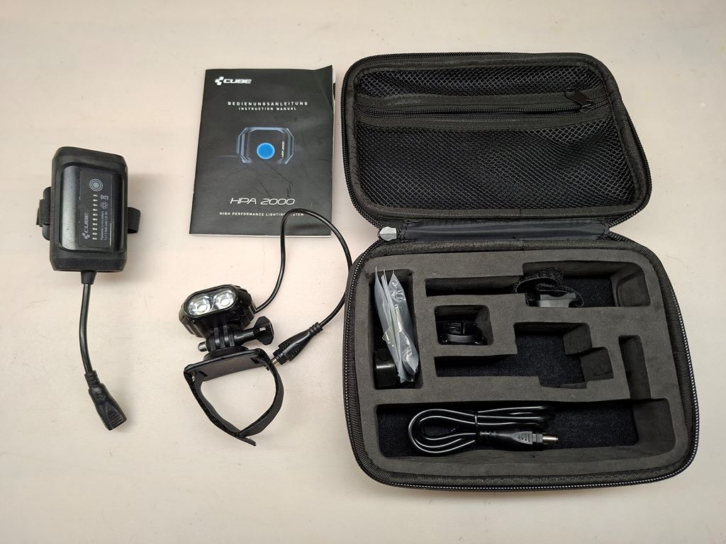 - Cube HPA 2000 Bike Scheinwerfer für Helmmontage -2000 Lumen Lichtstärke -Lampe sowie Akku kann am Helm befestigt werden -diverse Halterungen inklusive -inkl. Ladegerät Akkulaufzeit knapp 1.5h bei voller Leistung