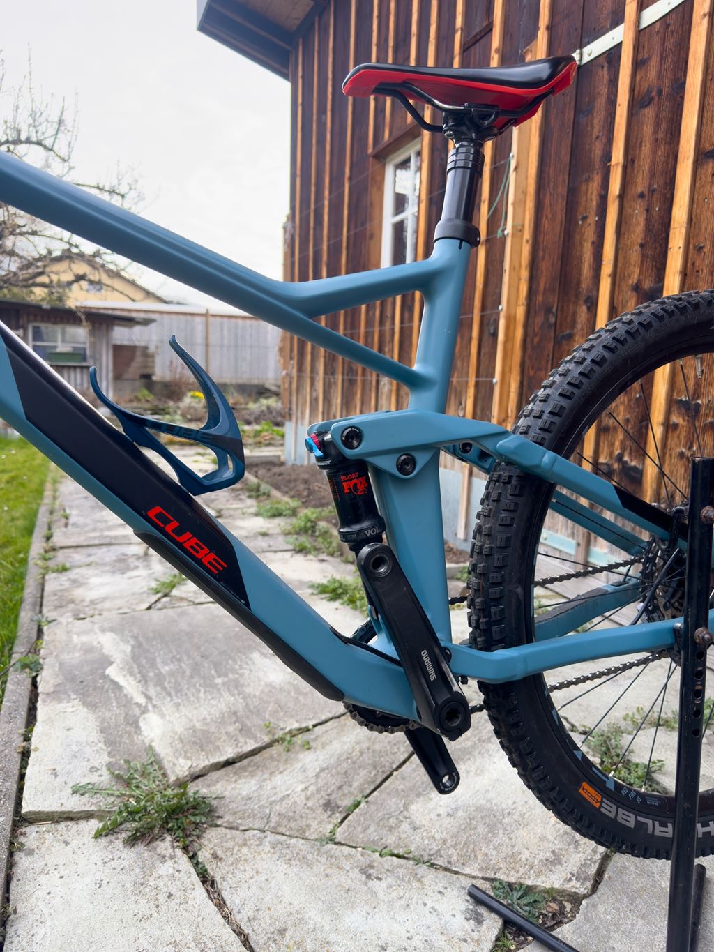 - Cube Stereo 140 HPC Race 27.5 bluegrey´n´red 2020 – – All Mountain Fully Gebrauchtes All Mountain Fully aus 2020 mit 140 mm Federweg. Geeignet für technische Trails, Touren und vielseitige Touren. Das Bike ist gebraucht, zeigt normale Gebrauchsspuren, ist aber gut gepflegt. Daten • Modell: CUBE Stereo 140 HPC Race • Baujahr: 2020 • Kategorie: All Mountain / Trail / Full-Suspension • Rahmengrösse: 20″ (ca. 180–185 cm Körpergrösse) • Radgrösse: 27,5″ • Federweg: 140 mm • Rahmenmaterial: Carbon Hauptrahmen, Aluminium Hinterbau • Gewicht: ca. 13,3 kg • Farbe: Bluegrey’n’Red • Schaltung: Shimano Deore XR, 12-fach • Bremsen: • Vorne: Shimano BL-MT501 hydraulische • Hinten: Shimano Deore XT hydraulische (Bremsscheibe neu) • Gabel: Fox Rhythm 34 • Dämpfer: Fox Float DPS, • Reifen: Schwalbe (hinten neu) • Sattelstütze: Versenkbare Teleskopstütze