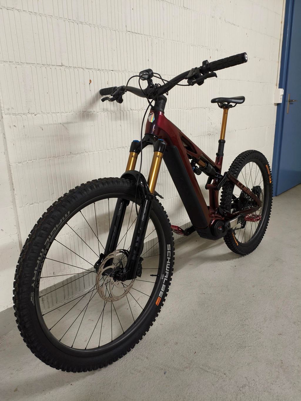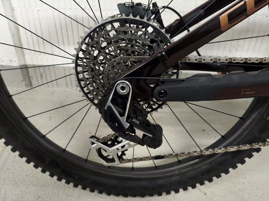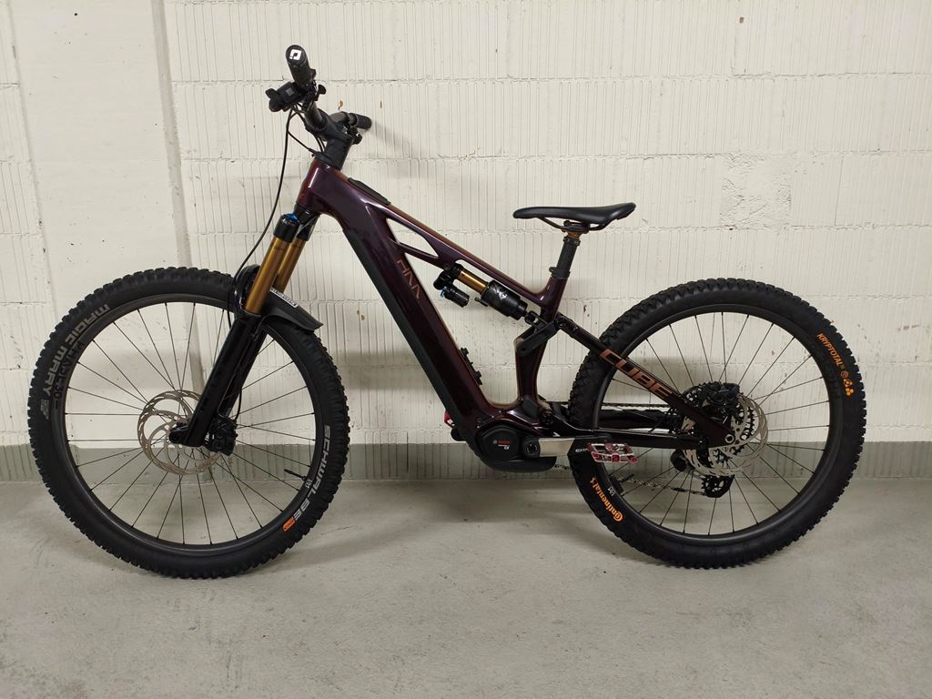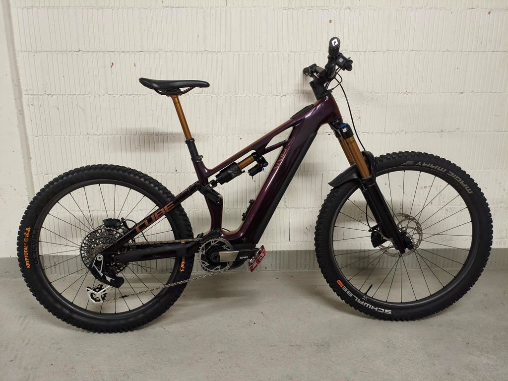 - Bike ist in einem guten Zustand. Eine Saison (nicht sehr viel) gefahren. Kilometerstand 391. Tubelessumbau. Lampe, Pedalen und Flaschenhalter werden demontiert. -Federgabel: Fox 38 Float Factory GRIPX2, Tapered, 15x110mm, E-Bike Optimized, 170mm, Kashima Coated -Dämpfer: Fox Float X2 Factory, 230x65mm, High/Low Speed Rebound & Compression w/ 2-Position Lever, Kashima Coated -Sattelstütze: Fox Transfer Factory 31.6mm, Kashima Coated -Carbon-Laufradsatz: Newmen Phase 30, 28/28 Spokes (Base/Strong), 15x110mm / 12x148mm, Tubeless -Bremsanlage: Magura Gustav PRO, Front 4-Piston/Rear 4-Piston, Hydr. Disc Brake (203/203) -Motor: Bosch Performance Line CX 85 bis 100Nm einstellbar -Remote: Bosch System Control, incl. Mini Remote -Akku: Bosch PowerTube 800 -Display: Bosch Purion 400 -Ladegerät: Bosch 4A -Schaltwerk: Sram XX Eagle AXS™ Transmission, 12-Speed, Electronic Shifting System -Schalthebel: Sram AXS™ Pod Ultimate Controller -Kurbelgarnitur: Race Face ERA E-MTB, 36T, Carbon -Kassette: Sram XS-1297, 10-52T -Kette: Sram XX Eagle™ Transmission -Lenker: Race Face ERA 35, Carbon -Steuersatz: ACROS AZF-675, ICR (Integrated Cable Routing), Top Zero-Stack 1 1/2" (ZS 56mm), Bottom Zero-Stack 1 1/2" (ZS 56mm), Fiber Inserts for Angle Adjustment, X-Connect Interface -Farbe solareclipse´n´bronze https://info.cube.eu/product?a=803600