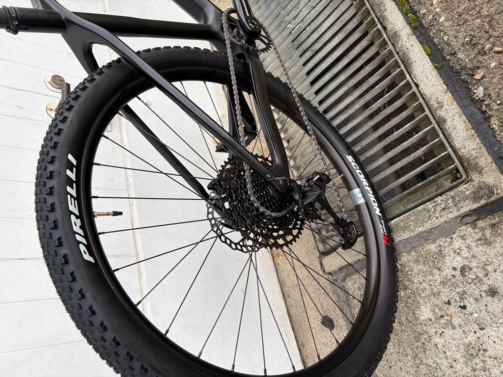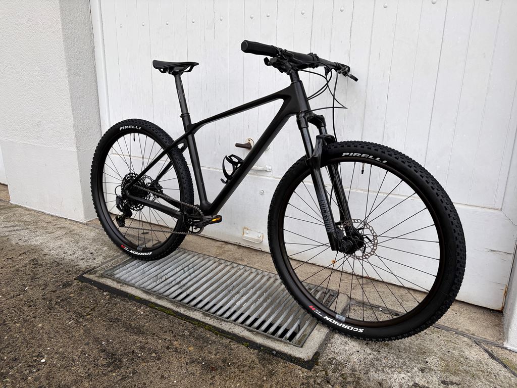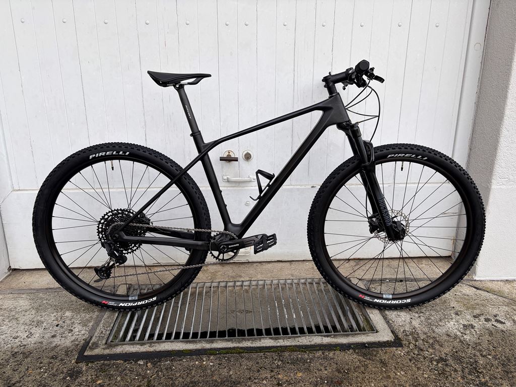 - Carbon-Rahmen Grösse large, 1 Jahr alt - super Zustand! Frisch aufgebaut Carbon Sattelstütze, Ritchey WCS Rock Shox Judy 100 mm, mit Lenker-Remote, neu! Sram NX Eagle 12-Gang, ganze Gruppe neu! Shimano BR-M200 Bremsen, neu! Radsatz 29", Boost, neu! Lenker, Vorbau, Sattel, Griffe, neu! inkl. Bidonhalter & Pedale, neu! Pirelli Scorpion Reifen, 29x2.40, neu!