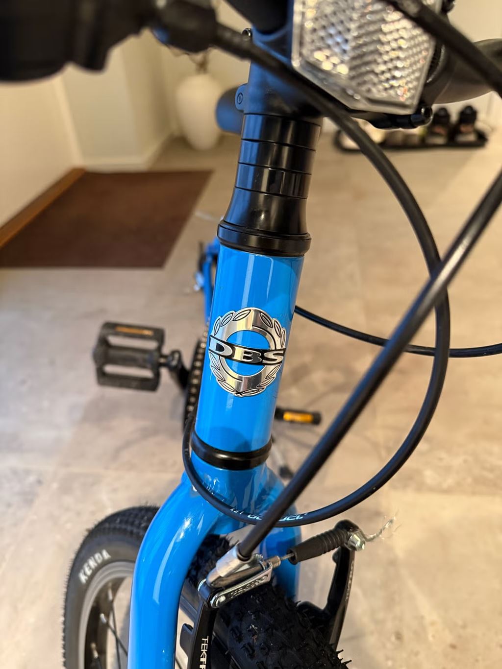 - Almost unused bike for sale. We bought this bike on impulse less than a year ago, but unfortunately it turned out to be too small, so it has hardly been used. Otherwise, it has been stored in a dry shed. Manufacturer's description: The DBS Superlight 20" is a new, extra-light bike designed for children aged 6-8. Low weight is important for children's cycling enjoyment, and the DBS Superlight 20" weighs only 8 kg. The bike has user-friendly hand brakes adapted to small children's hands, a bell on the handlebars, and a padded seat that is adjustable in height. The front and rear brakes are operated from the handlebars. The bike is equipped with 8 gears from Shimano, as well as tires from Kenda with a tread pattern suitable for both asphalt and light gravel. Safety standard ISO 4210
