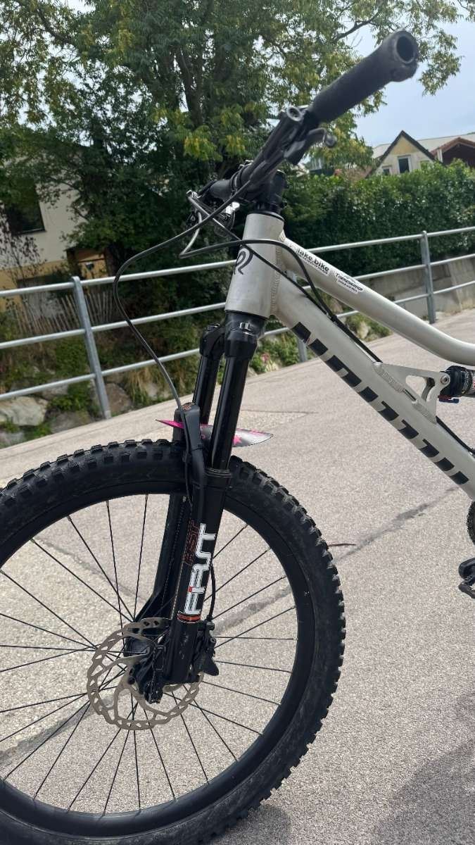- Wir verkaufen das X24 unserer Tochter - sie hat wirklich gut drauf aufgepasst, ist aber rausgewachsen... Das Rad wurde immer ordentlich gepflegt und ist in sehr gutem Zustand. Natürlich gibt es Gebrauchsspuren. Diese sind aber für ein MTB sehr gering. Es wurde nicht "runtergerockt"!! Den schlechten originalen Dämpfer habn wir gleich mal durch einen guten ersetzt (RockShox Monarch RL) Vor kurzem wurden neue Maxxis Minion DHF vorne und hinten aufgezogen - sind so gut wie neu. Pedale sind die Originalen wieder drauf. Neue(r) Besitzer(in) wird viel Freude damit haben, und wir auch wenn es in wertschätzende Hände kommt : ) STANDOVER HEIGHT 65CM FRAME BUTTED ALLOY FRAME, 100/125MM TRAVEL, DROPPER READY REAR SHOCK ROCKSHOX MONARCH RL 165x38mm 430 LF 1 TUNE Mid/Mid FORK RST FIRST AIR 15, 120MM TRAVEL, 15MM THRU AXLE, PM DISC MOUNT STEERER: TUBE AL6061 CRANKS: SAMOX 150MM DIRECT MOUNT AXLES: THRU AXLES AL7075, 15MM FRONT, 142 x 12MM REAR (1.0P) PEDALS: SDG SLATER 90 PEDALS, BLACK BOTTOM BRACKET: SAMOX 24MM EXTERNAL CUP, SEALED CARTRIDGE BEARING RIMS 24 X 28H, DOUBLE WALLED AL6061, TUBELESS COMPATIBLE REAR HUB CNC'D STRAIGHT PULL AL6061, 12x142 (1.0) THRU AXLE FRONT HUB CNC’D STRAIGHT PULL AL6061, 15MM THRU AXLE CHAIN KMC X10 CHAINRING SAMOX DIRECT MOUNT STEEL 30T WEIGHT 11.5KGS W/O PEDALS SHIFTER SHIMANO SL-M5100-IR, DEORE, RIGHT,11-SPEEDRAPIDFIRE REAR CASSETTE SHIMANO CS-M5100-11, DEORE, 11-SPEED 11-51T BRAKES SHIMANO DEORE BL-MT6000, 160MM ROTORS LEVERS SHIMANO DEORE BL-M6000 FRONT TYRE MAXXIS MINION DHF DUAL WT 24*2,40, FOLDING REAR TYRE MAXXIS MINION DHF DUAL WT 24*2,40, FOLDING HEADSET SEMI INTEGRATED, TAPERED 1 1/8" - 1 1/5" CARTRIDGE BEARING STEM RITCHEY OS FORGED AL6061, 35MM REACH BARS 640MM RITCHEY OS DOUBLE BUTTED AL6061, 18MM RISE GRIPS ER LOCK ON KRATON 120MM SEAT POST RITCHEY, 30.9MM x 350MM, AL6061 SADDLE SDG FLY JR, BLACK SEAT CLAMP RITCHEY QR, 34.9MM DERAILLEUR SHIMANO RD-M5100, DEORE,SGS 11-SPEED