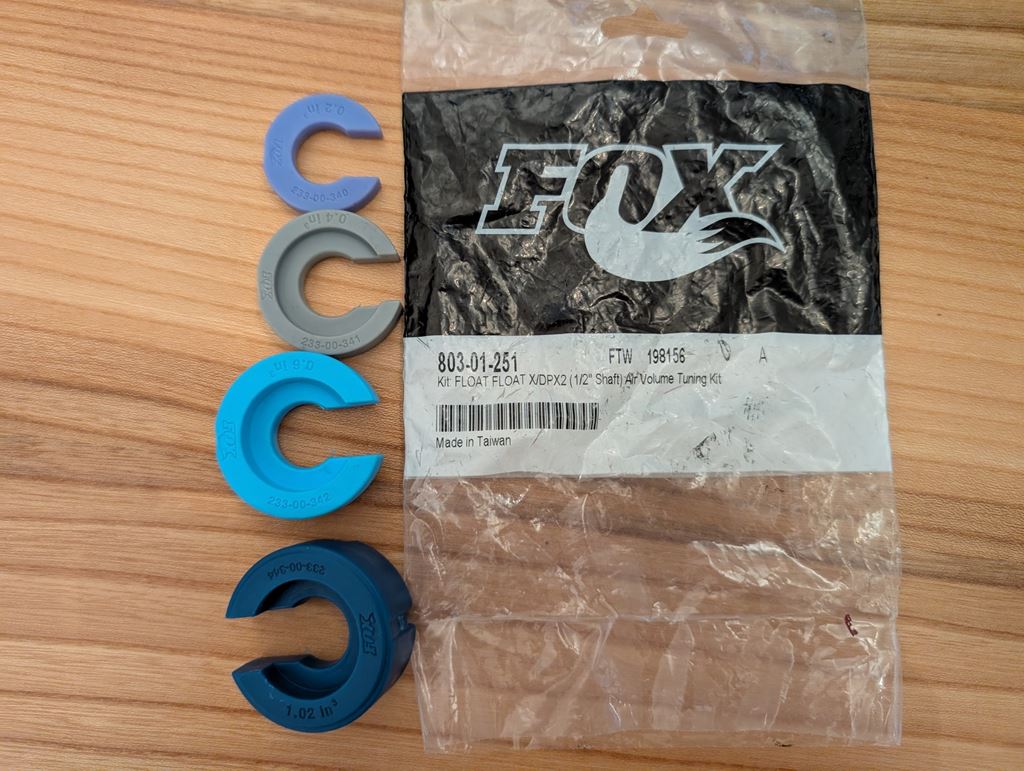 - Fox Air Volume Tuning Kit mit der Teilenummer 803-01-251 Enthält die abgebildeten Tokens, alternativ kann ich noch einen für die 36er Federgabel dazugeben. (Teilenummer 234-04-736)