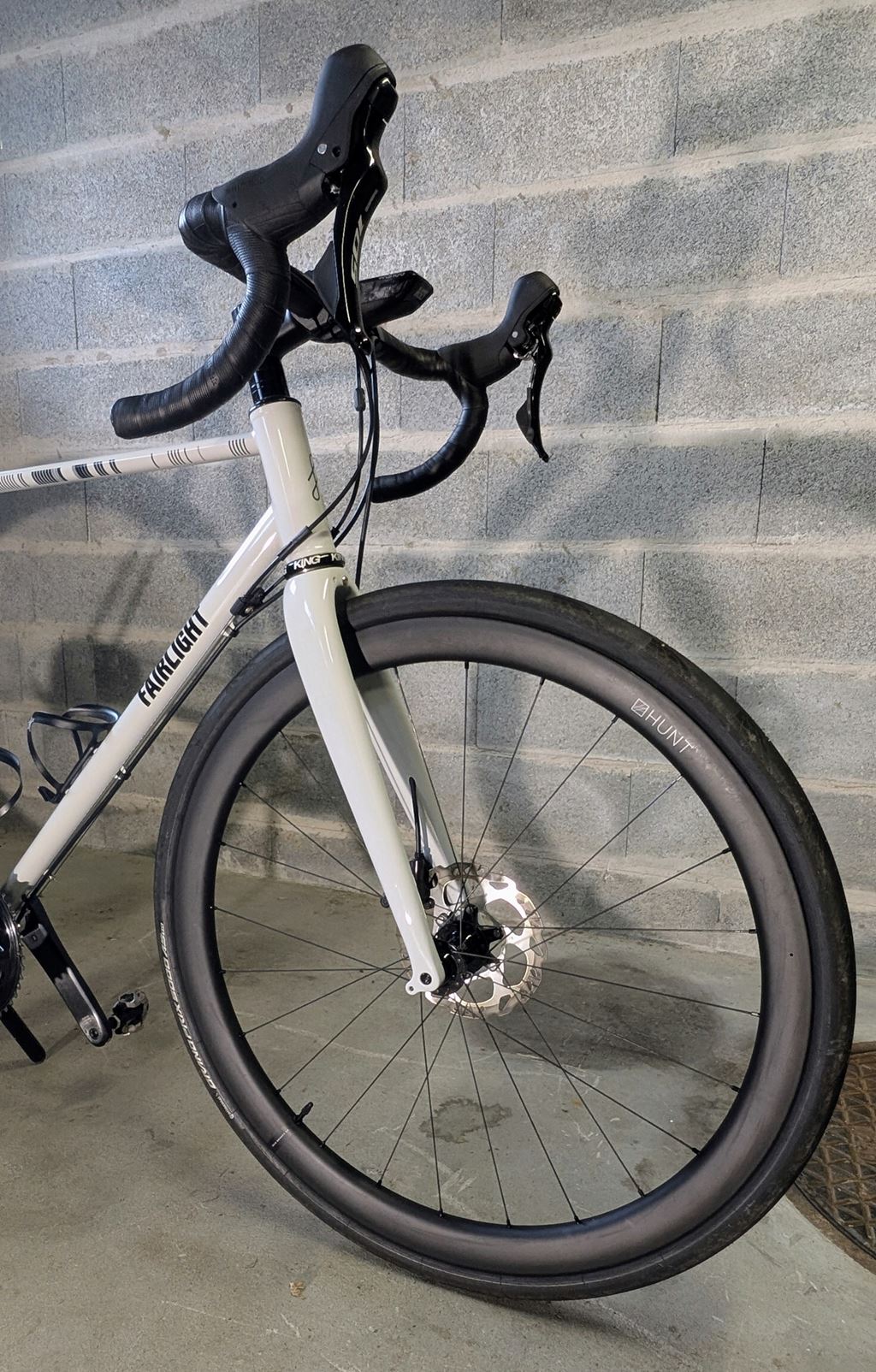 - Vélo de course "all-road" de la marque anglaise Fairlight. Le Strael, c'est un vélo en acier destiné aux courses longues dans toutes les conditions, c'est un vélo qui est utilisé sur les courses d'ultra-endurance. Il a des reviews incroyables (dispos sur le site web de la marque) et il est incroyable à rouler, confortable et néanmoins vif. Il est destiné avant tout à la route, mais il passe facile sur du gravel léger. Je préfère malgré tout la forêt et les cailloux et donc mon VTT ? Le vélo a une année et a roulé 800 km. Specs : Cadre acier 56R, fourche non coupée (30mm de spacers) Groupe Shimano 105 mécanique, 2x12 vitesses, 50/34 devant et 11-36 derrière Cockpit FSA Gossamer (la potence originale en 110 sera remontée pour la vente) Selle Fizik et tige de selle FSA Headset Chris King Roues Hunt 40 Carbon Disc Pneus Continental GP5000 AS montés en tubeless Prix neuf estimé à CHF 3'300 (rien que les roues Hunt valent CHF 1'000). Les pédales sont comprises dans le prix, pas les porte-gourdes. Pas d'envoi ni de livraison.