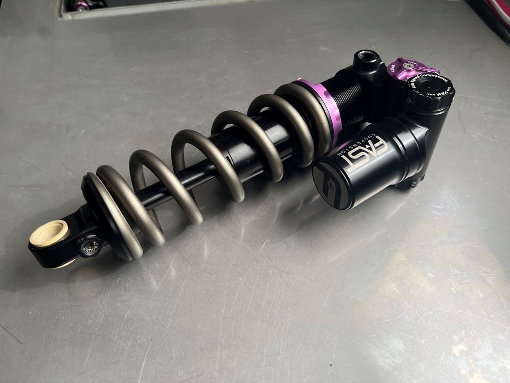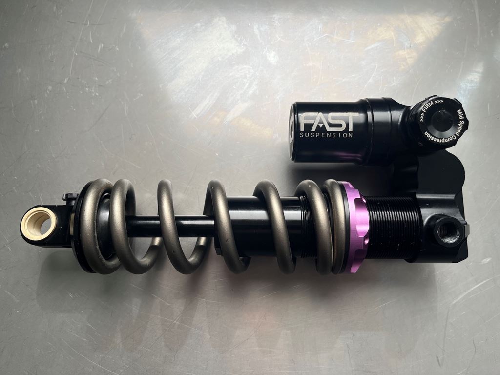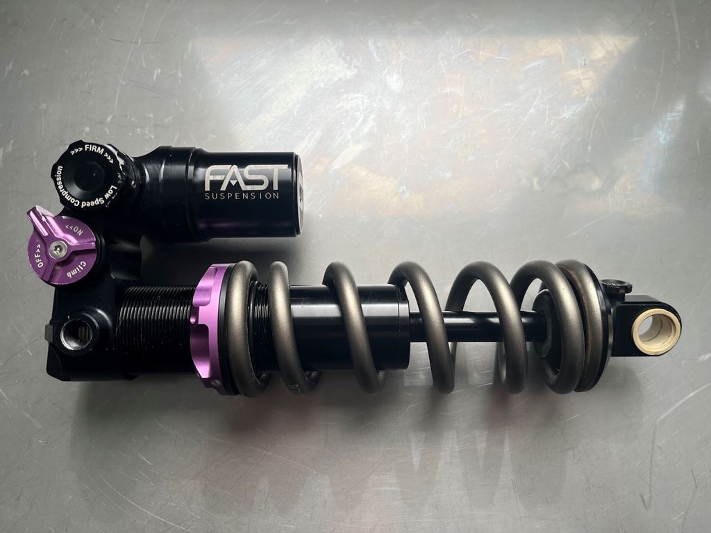 - Fast Suspension Fenix Evo Trunion 3 ways compressions : high speed (internal), mid speed and low speed (external settings) Low speed rebound 205mm eye-to-eye, travel set to your bike specifications (from 57.5 to 65mm) Will come fully rebuild at the Swiss Fast Service Center : - full service - valving adapted to your bike and your preferences - ICHU/FAST Super Light Spring (with the right rate for your weight and your bike) - 3 months warranty Optional (+ 100.-) upgrade hydraulic bottom out (like the Fenix 2.0) Shipping = 12.-