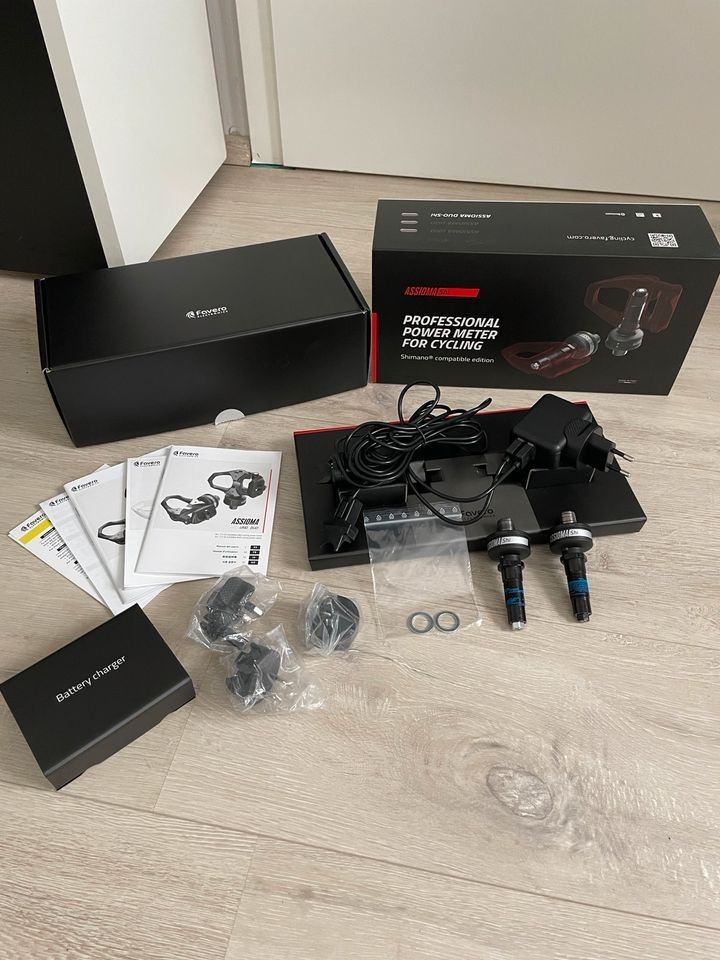 - Favero Assioma Duo Shi - Powermeter Leistungsmesser Ein Favero Assioma Duo Shi Pedalachsen-Set zur Leistungsmessung fürs Rennrad. Rechnung vorhanden, gekauft am 19. April 2025. Sie weisen keine Kratzer, Macken oder Probleme auf. Sie befinden sich in einem tadellosem Zustand. Es handelt sich nur um die Pedal-Achsen, nicht um die vollständigen Pedale. Der Hersteller bietet diese so an, damit der Endnutzer sie in "normale" Shimano-Pedalkörper montieren kann. Dafür wird einfach die Originale Achse ausgebaut und getauscht. Die Pedalachsen wurden ca. 100 km gefahren und nun verkauft, da ich auf ein anderes System umsteige. Technisch und optisch ohne Mängel, in neuwertigem Zustand (siehe Bilder). BEIDSEITIGE LEISTUNGSMESSUNG Linker und rechter Leistungsmesser, um beide Beine zu berücksichtigen, für maximale Genauigkeit. Favero Assioma Duo Shi - Powermeter Leistungsmesser Assioma kommuniziert mit Fahrradcomputern und Smartphones (sowohl Android als auch iOS) über Bluetooth und ANT+. ORIGINAL LIEFERUMFANG: Leistungsmesser Pedalachse Links und Rechts 8mm Innensechskant Spacer für versch. Kurbeln Ladegerät mit Adaptern und 2x USB Kabel zum gleichzeitigen Laden Gebrauchsanweisung etc. ALLES IN OVP Montage ist super einfach, dauert insgesamt ca. 10 Minuten. Liste kompatibler Pedale von Shimano und weiter technische Daten sowie Informationen, entnehmen sie bitte online.