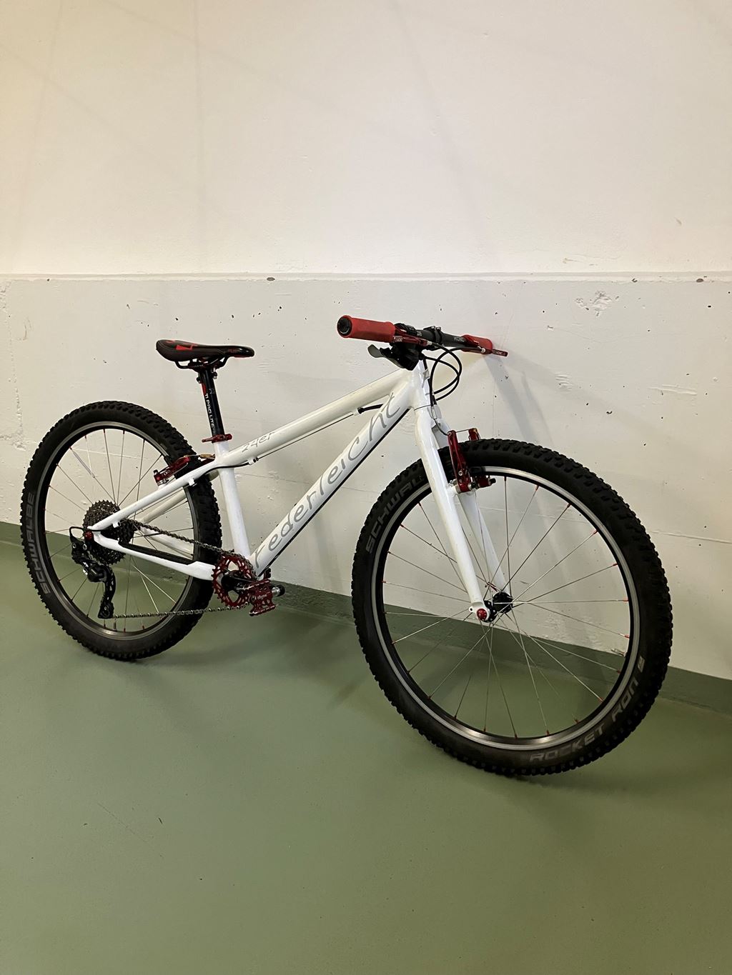 - Verkaufe sehr gut erhaltenes Federleicht 24" Kinder MTB. Das Rad ist wie schon der Name sagt, sehr leicht. Es wurde stets gut gepflegt und gewartet. Shimano XT 10-Gang und viele gefräste KCNC Teile aus Aluminium. Probefahrt und Abholung in 9000 St.Gallen. Ein Versand per SBB ist für 40.- schweizweit machbar. Der Neupreis betrug ca. Fr 1800.- Verkaufspreis Fr. 490.- VHB
