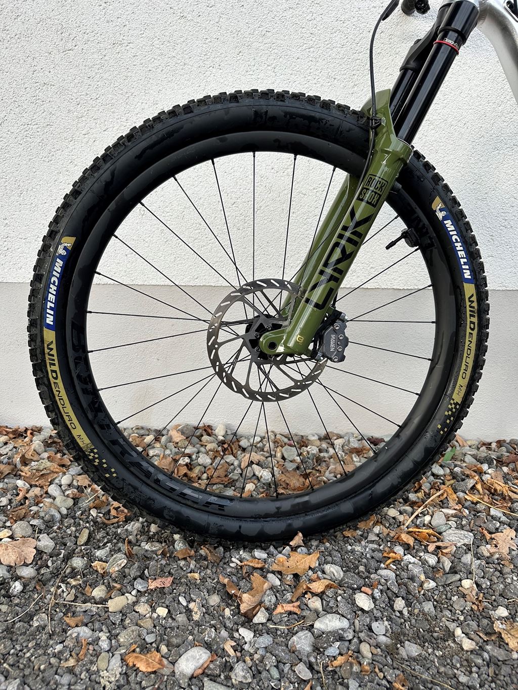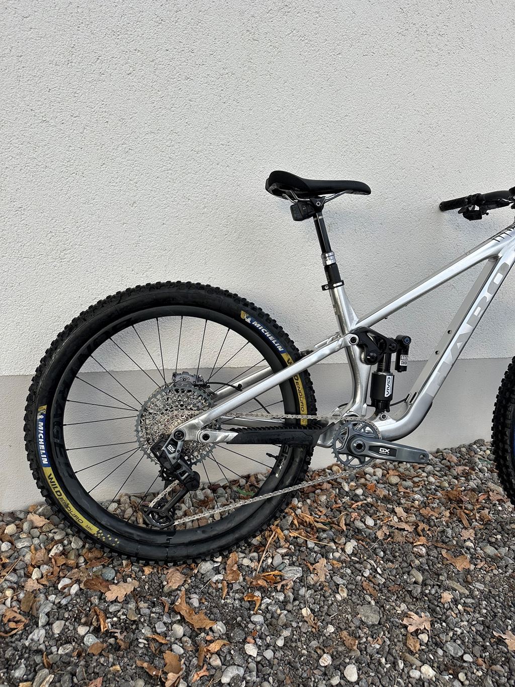 - Ich verkaufe das Haro Daley. Es wurde nur 3 Monate sporadisch gefahren, ich verkaufe es aus Sponsoring Gründen. Der Rahmen hat keine Gebrauchsspuren und wurde nie gecrasht. Es ist ein Mullet mit 29 Zoll vorne und 27.5. Zoll hinten. Ich wäre bereit, dass man sich an der deutsch/schweizerischen Grenze trifft, denn ich wohne in Deutschland. Tel: +49 1714546818 Rahmen: Haro Daley Größe M Aluminium Farbe: RAW (fühlt sich wie ein L an) Federgabel: Rockshox Lyrik in Grün (Limited Edition) Ultimate Charger 150mm Debon Air Dämpfer: Rockshox Vivid Ultimate 150mm Lenker: Bontrager Line (neu!) Vorbau: Bontrager (neu!) Griffe: Bontrager (neu!) Bremsen: SRAM Maven Laufräder: Bontrager Line Carbon vorne 29 Zoll, hinten 27.5 Zoll (neu!) Reifen: Michelin Wild Enduro Bremsscheiben: SRAM 203mm Sattelstütze: Reverb AXS Kurbel: GX SRAM Eagle 165mm, 12 speed Derailleur: SRAM GX Eagle AXS 12 speed (neu!) Shifter: AXS pod SRAM Sattel: WTB Volt