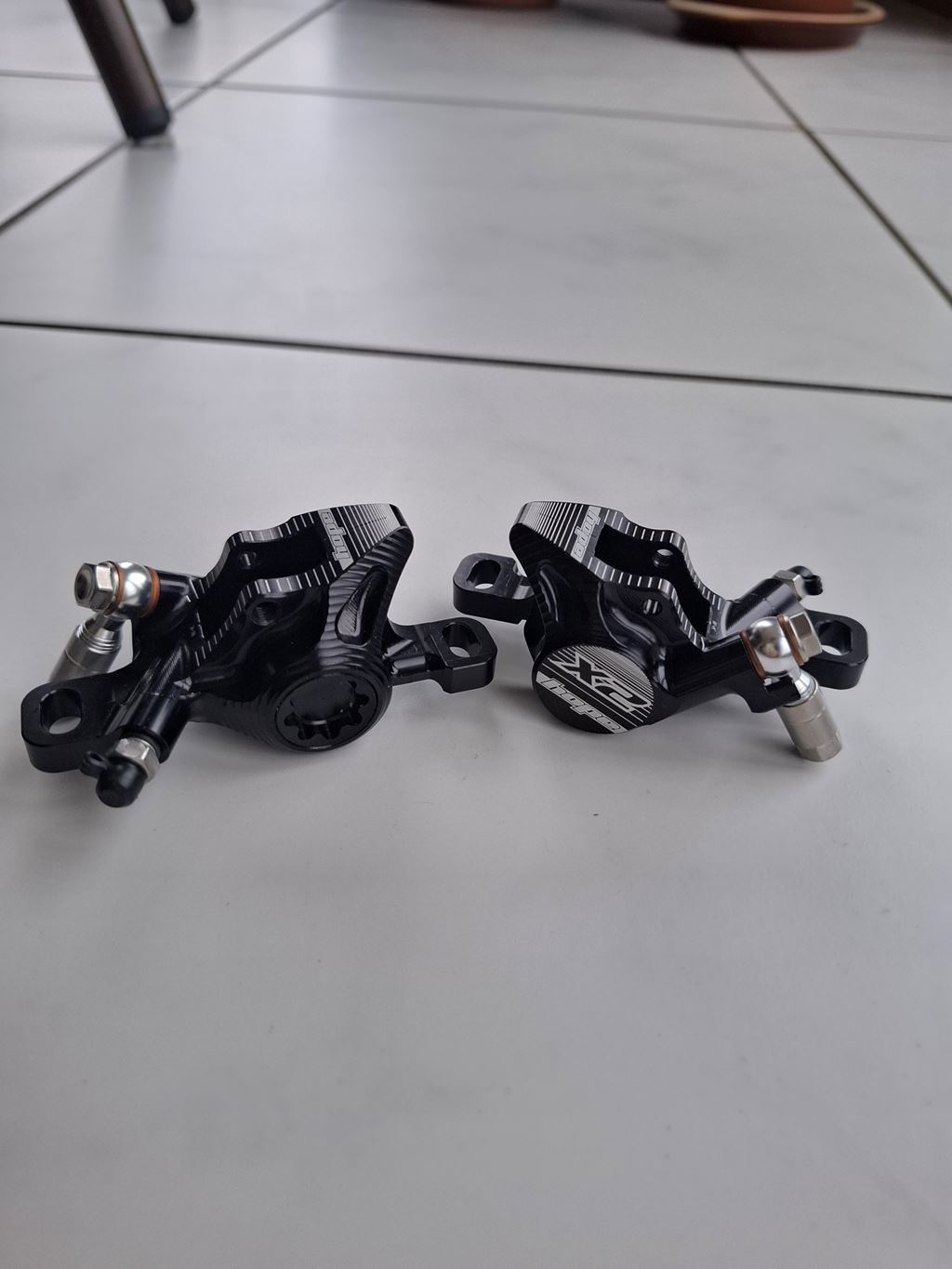 - selling 2 complete Hope X2 brake caliper (HBSPC44) with red brake pads made by Galfer 69 chf for both calipers