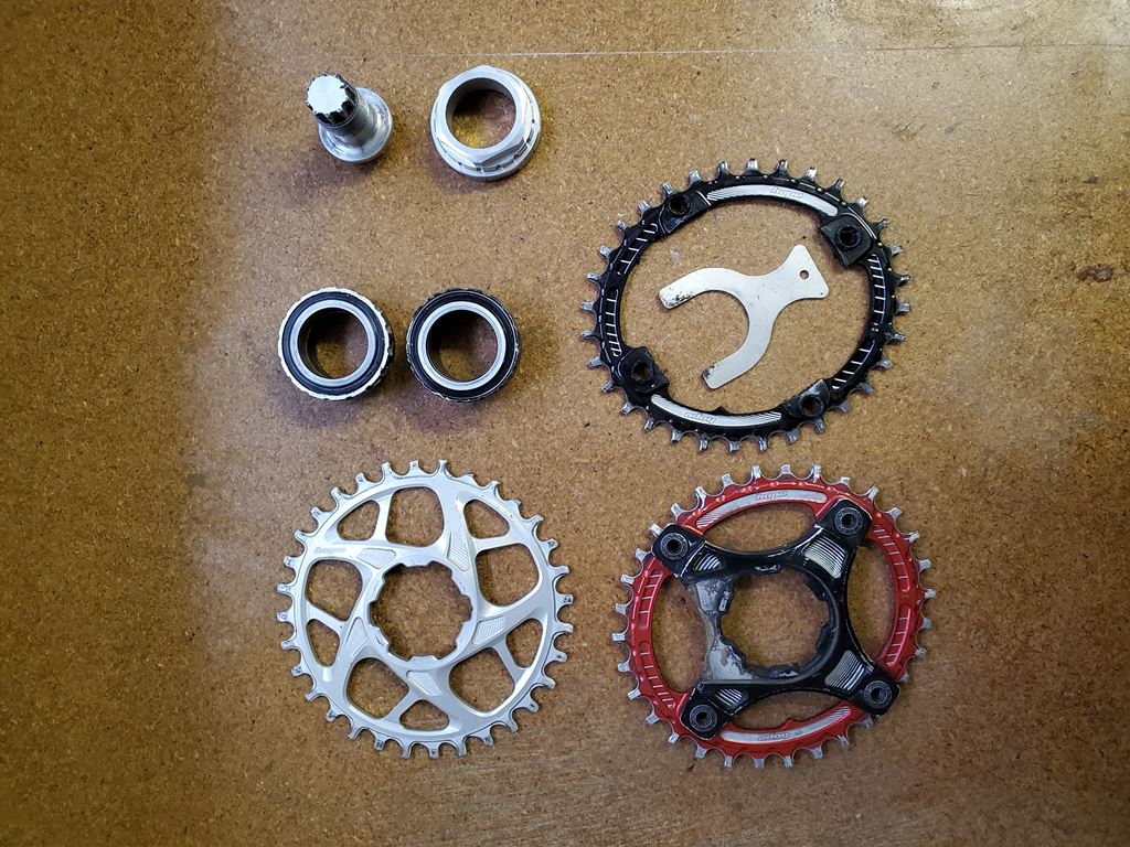 - Hope evo crankset with bottom bracket, hope tools and many spare parts. The bearings will need soon to be replaced but with some grease they still can be riden for sometime. This crankset has been well used, but it's hope so it's designed to survive apocalypse :) (115.- with shipping)
