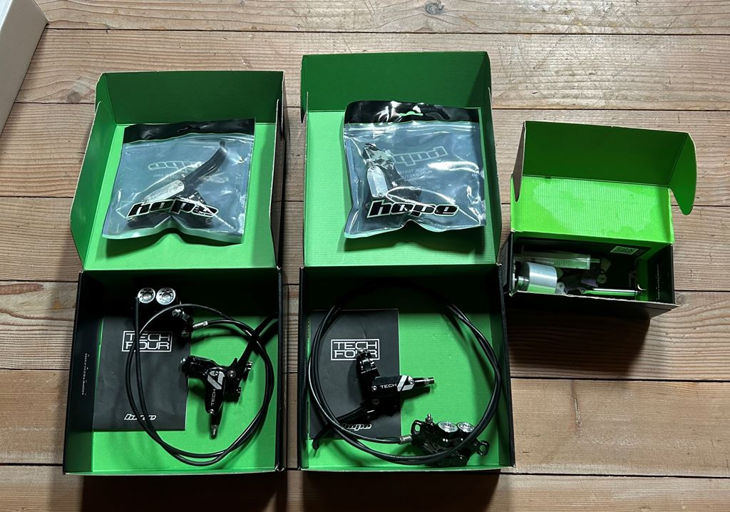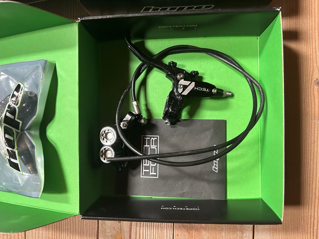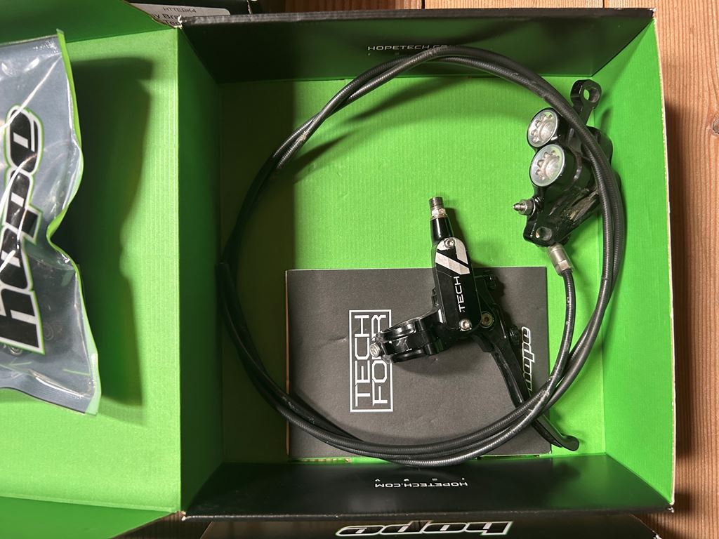 - Hier verkaufe ich meine geliebte Hope Tech 4 V4 in Schwarz silber. Die Bremse war ca. 6 Monate an meinem Bike im Einsatz. Während dieser Zeit hat die Bremse nie Probleme gemacht und funktioniert auch bis heute noch einwandfrei. Ich verkaufe die Bremse h+v mit 3 paar Bremsbeläge, 2 Ersatzhebel und dem originalem Entlüftungskit von Hope mit ca. 750 ml Dot-Bremsflüssigkeit. Bei Fragen gerne melden:)