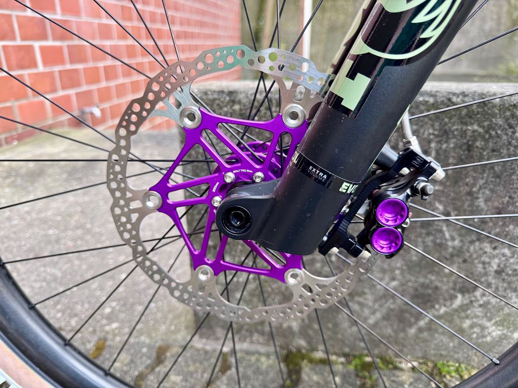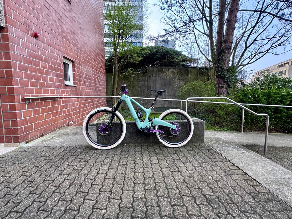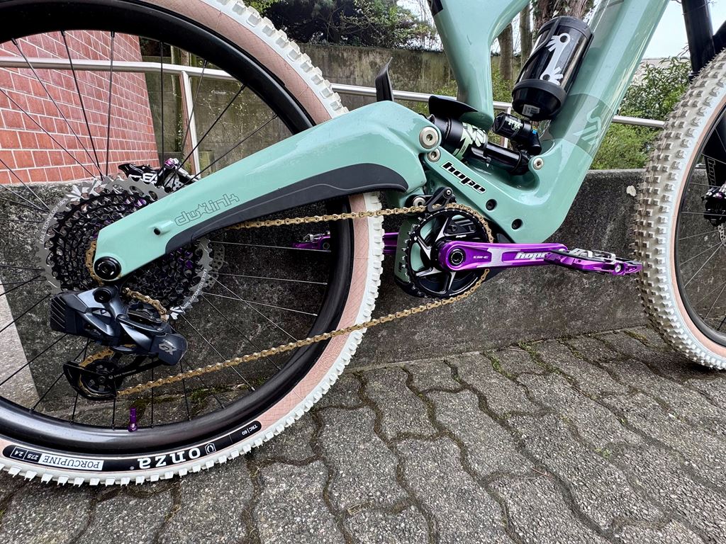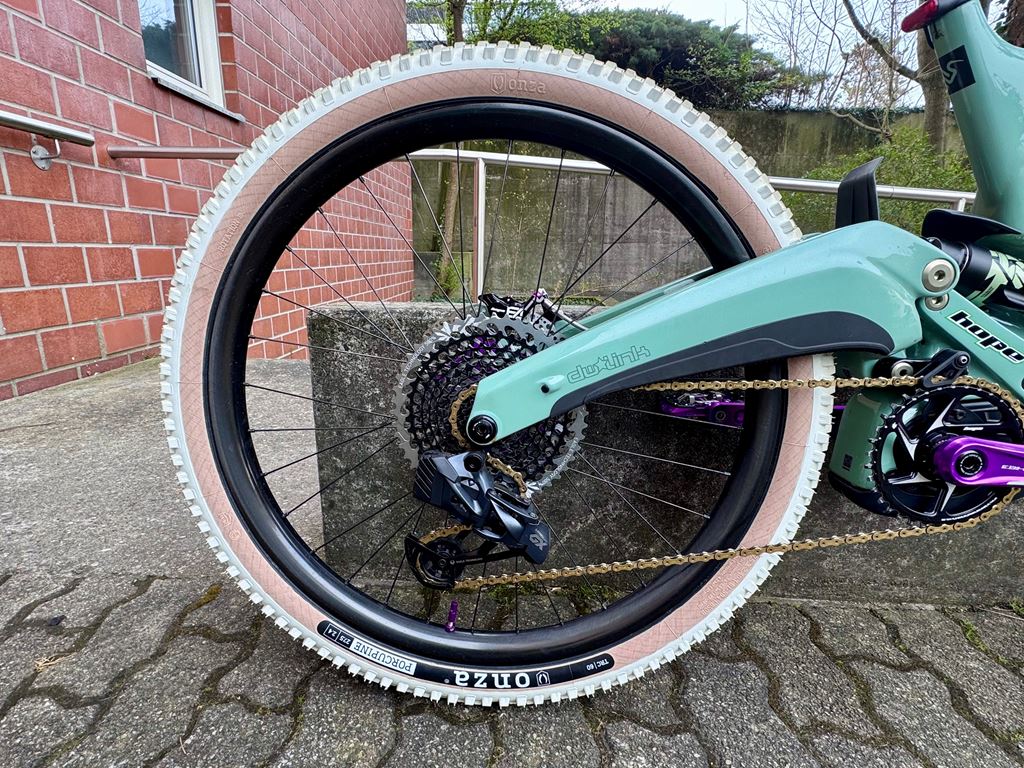 - ZU VERKAUFEN !!! ZU VERKAUFEN !!! ZU VERKAUFEN !!! IBIS OSO E-BIKE ------------------------- Ein Absolut einmaliger Spezial Aufbau von mir selbst !!! Auf diesem Bike war KEINE Sram Transmission Montiert ist aber Umrüstbar !!! 1893 Gefahrene km !!! RAHMEN , ibis oso M" AKKU , Bosch 750Wh STEUERSATZ , Chris King Inset 2 / 3D Violet GABEL , 38er Fox X2 Boost 15mm für eBikes VORBAU , Hope 35 / 35 violet LENKER , ENVE M7 Carbon 40mm schulterhöhe SATTELSTÜTZE , Thomson 31,6 410mm KEINE , ROCK SHOX ASX SATTEL , SDG KETTENBLATT , Hope DM 36er KURBELN , Hope 165mm Violet KASSETTE , Sram 12-fach 10 / 50 SCHALTER , Sram AXS SCHALTWERK , Sram GX AXS PEDALE , Hope Gravity violet mit allen Teilen ganz Neu LAUFRÄDER ------------------- VR. FELGE 29" AM935 Carbon Asymetrisch 32 Loch Nabe Hope Pro 5 / 110 x 15mm Violet 32 Loch Nippel DT-Pro Lock Messing schwarz DT-Competition 2,0-1,8-2,0 schwarz Schlauch Air Plus Schwalbe Reifen ONZA Porcupine 29" x 2,4" HR. FELGE 27,5" AM735 Carbon Asymetrisch 32 Loch Nabe Hope Pro 5 / 148 x 12mm Violet 32 Loch Nippel DT-Pro Lock Messing schwarz DT-Competition 2,0-1,8-2,0 schwarz Schlauch Air Plus Schwalbe Reifen ONZA Porcupine 27,5" x 2,4" SCHEIBENBREMSEN ------------------------------ Hope Tech 4 / E4 schwarz mit Violeten Teilen von mir Umgebaut mit Stahlflex Scheiben VR. + HR. Floating 220er Violet / 6-Loch
