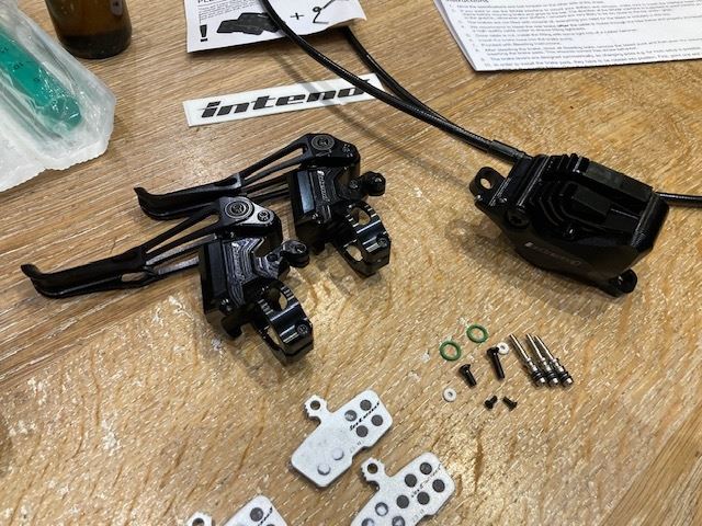 - Vends ma paire de frein Intend Trinity DH Black Serie neuf jamais montés avec 4 jeux de plaquettes et kit purge. Facture disponible.