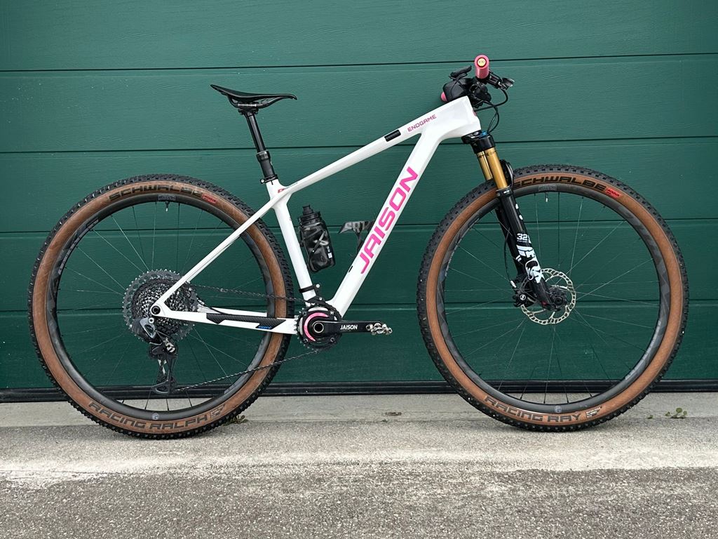 - Rahmenset Jaison Endgame 29 Carbon Rahmengrösse: 17" (150-170 Körpergrösse) Einbaubreite: Boost 148mm Farbe: Weiss glänzend Decals: Pink inkl. Steuersatz, Sattelklemme, Steckachse hinten Wurde 4 Monate gefahren (September bis Dezember 2025) - fast neu Bike könnte auch aufgebaut gekauft werden, ähnlich Bild 2.