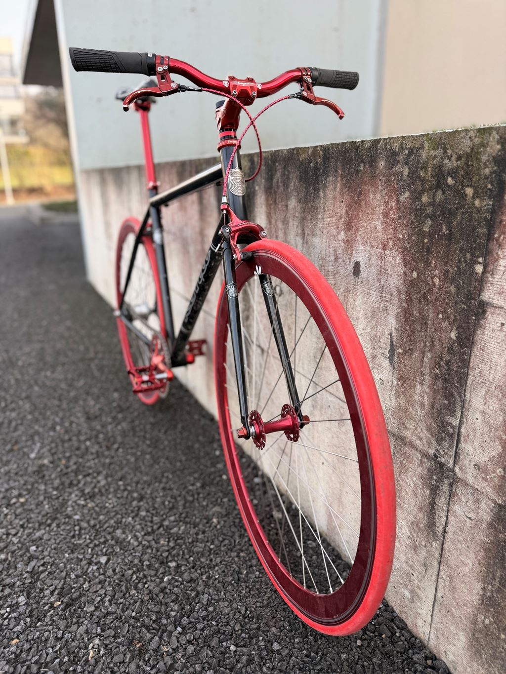 - Verkaufe ein absolut einzigartiges Kona Paddy Wagon. Der legendäre Reynolds 520 Stahlrahmen wurde mit viel Liebe zum Detail und ausschliesslich High-End Komponenten neu aufgebaut. Ein Traum für Ästheten und Pendler, die ein wartungsfreies, aber exklusives Bike suchen. Highlights & Custom-Komponenten: • Rahmen: Reynolds 520 Butted Cromoly Stahl (Kult-Rahmen, extrem langlebig und komfortabel). • Antrieb: Sturmey-Archer 2-Gang Kick-Shift Nabe. Schaltet durch kurzes Zurücktreten – keine Schaltkabel, maximale Clean-Optik. • Cockpit: • Vorbau: Hope XC (90 mm, rot eloxiert). • Steuersatz: Hope 1 1/8" (rot eloxiert). • Lenker: BLB (Brick Lane Bikes London). • Bremsanlage: BLB Bremshebel kombiniert mit Dia-Compe Bremszangen (zuverlässige Performance im Stadtverkehr). • Laufradsatz: • Vorderradnabe: Miche (hochwertige Bahnnabe). • Felgen: Klean. • Reifen: Tannus Vollgummi (100% pannensicher – nie wieder aufpumpen!). • Anbauteile: • Sattelstütze & Sattelklemme: BLB / Hope (passend in Rot). • Sattel: THE. Zustand & Besonderheiten: Das Velo ist ein absolutes "Sorglos-Bike". Dank der Vollgummireifen und der nabeninternen Schaltung gibt es praktisch keinen Wartungsaufwand. Die hochwertigen Komponenten von Hope und Miche heben das Bike weit über den Standard hinaus. Besichtigung und Probefahrt in 6210 Sursee möglich. Privatverkauf: Der Verkauf erfolgt unter Ausschluss jeglicher Gewährleistung, Garantie oder Rücknahme. VHB: 1'250.– CHF