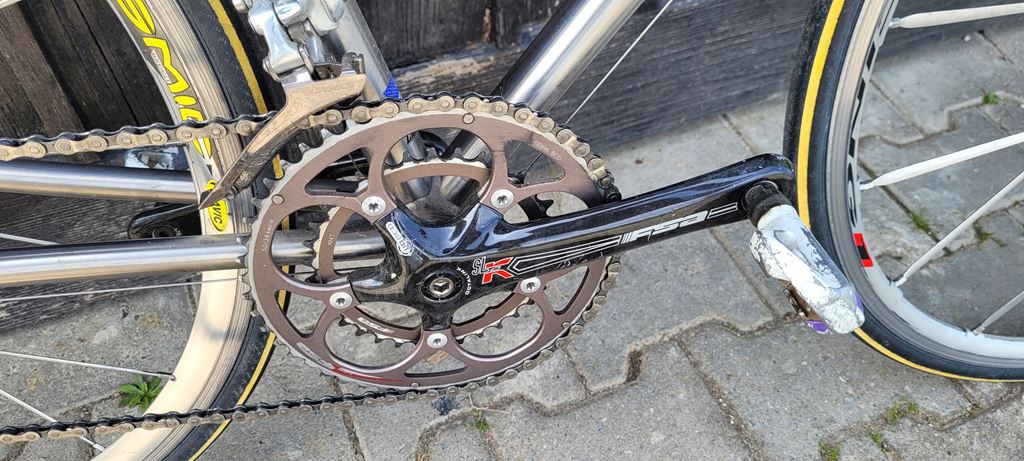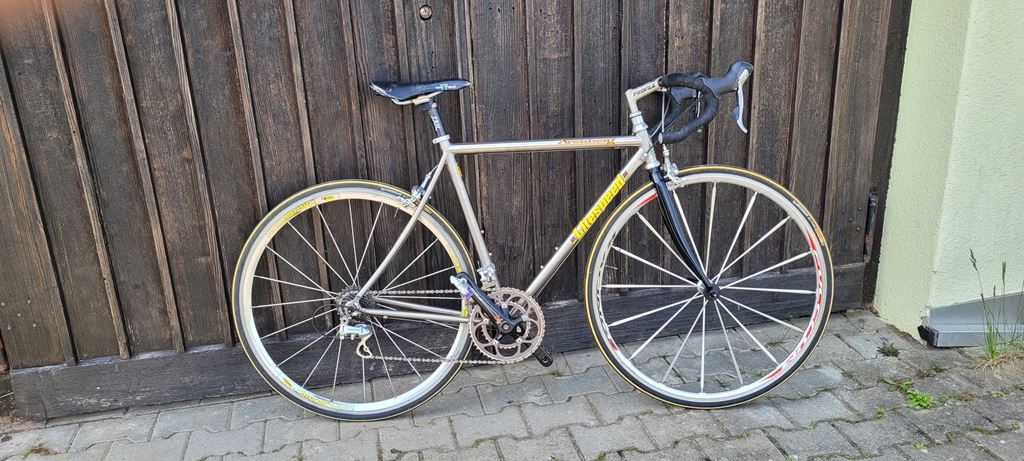 - Zum Verkauf steht ein klassisches Titanium-Rennvelo der Marke Litespeed, Modell Arenberg, Rahmengrösse 51 cm, Baujahr 2000. Ausstattung: - Bremsschalthebel Shimano Ultegra 2x9-Gang - Kurbel: FSA Kompakt - Der gesamte Antrieb ist noch 1a, da das Rad sehr wenig Kilometer hat - Bremsen, Umwerfer und Schaltwerk: Shimano Dura-Ace Serie 7700 - Sattelstütze: FRM Carbon (italienische Tuningschmiede) Hinweise zum Zustand - Der Rahmen hat sehr wenige Gebrauchsspuren, Titanium sei Dank. Einige Komponenten sollten ersetzt werden. Die Reifen (ca. 20 Jahre alt) und Laufräder gehören dazu. - Das ursprüngliche Mavic Cosmic Vorderrad hatte einen Haarriss und wurde durch ein sehr gebrauchtes Fulcrum Racing One aus meinem Fundus ersetzt. Der Sattel ist optisch nicht besonders schön und war schon gebraucht, als ich das Velo im Jahr 2002 für meine Frau aufgebaut habe. Die Ultegra-Brems-Schalthebel zeigen typische Korrosionsspuren am Aluminium, wie sie bei älteren Shimano-Hebeln oft vorkommen – unabhängig von der Nutzung. Preis: für Abholung. Bei Fragen dürft ihr euch gerne melden.
