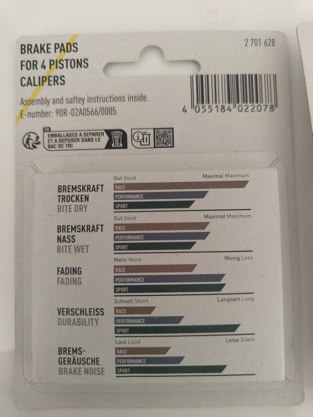 - 2 sets a 4 bremsbeläge für magura mt5/7 8.p performance Fabrikneu ungeöffnet