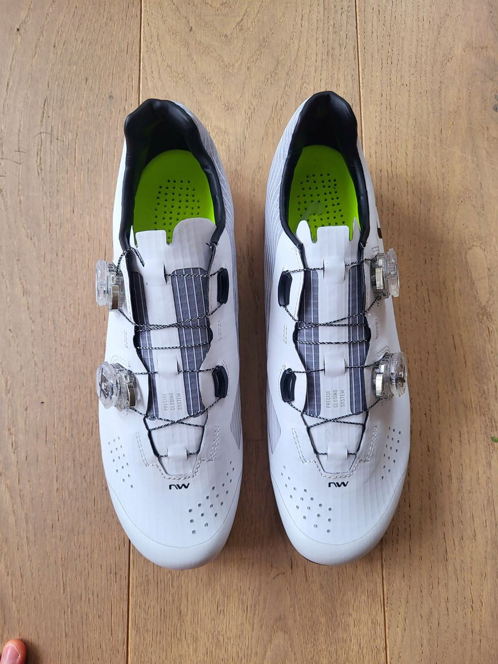 - Die Powershape-Carbon-15-Sohle mit einem Steifigkeitsindex von 15,0 ist aus 100 % unidirektionalen Carbonfasern gefertigt und mit dem Powershape-System am Fußgewölbe ausgerüstet, mit dem eine 100%ige Kraftübertragung auf die Pedale gewährleistet wird. NW Speedplay/Wahoo-Adapter-kompatibel für den geringsten Abstand zwischen Fuß und Pedal. Oberschuh mit ARS(Anatomic Reticular Support)-Technologie, einem Exoskelett aus PU, das den Fuß umgibt und die Belastung beim Treten gleichmäßig verteilt. Doppelter SLW3-Drehverschluss, das einzige Verschlusssystem mit stufenweiser Lockerung auf einfachen Knopfdruck. Auch an heißen Tagen gelangt überschüssige Wärme über den Netzeinsatz nach außen.