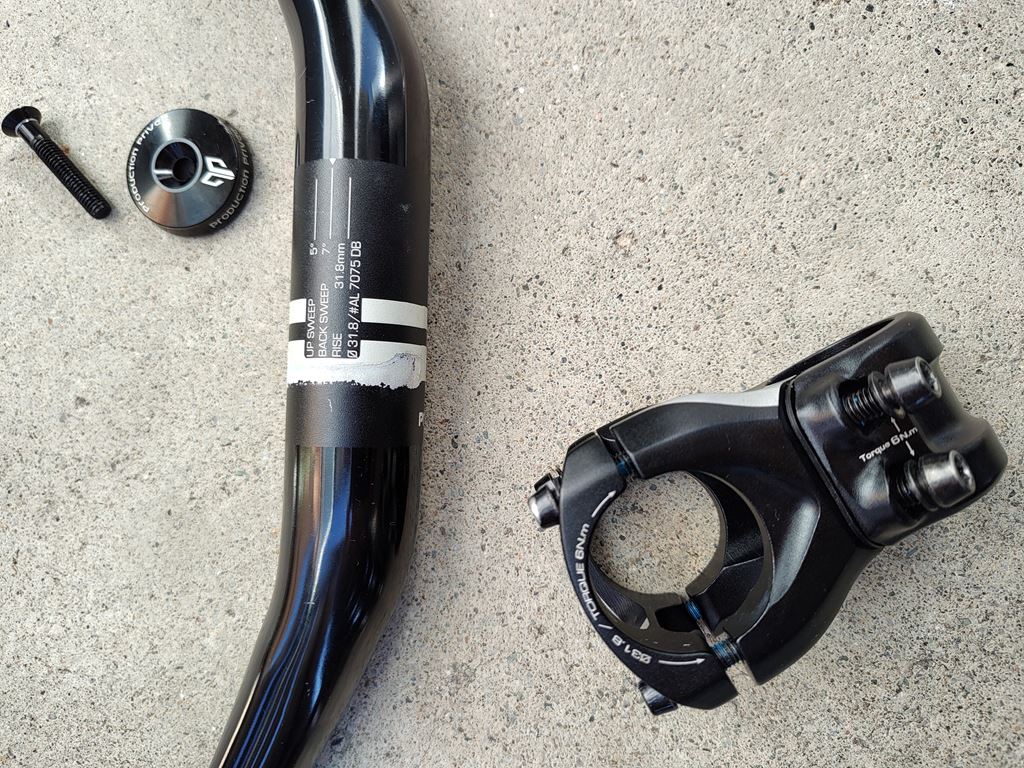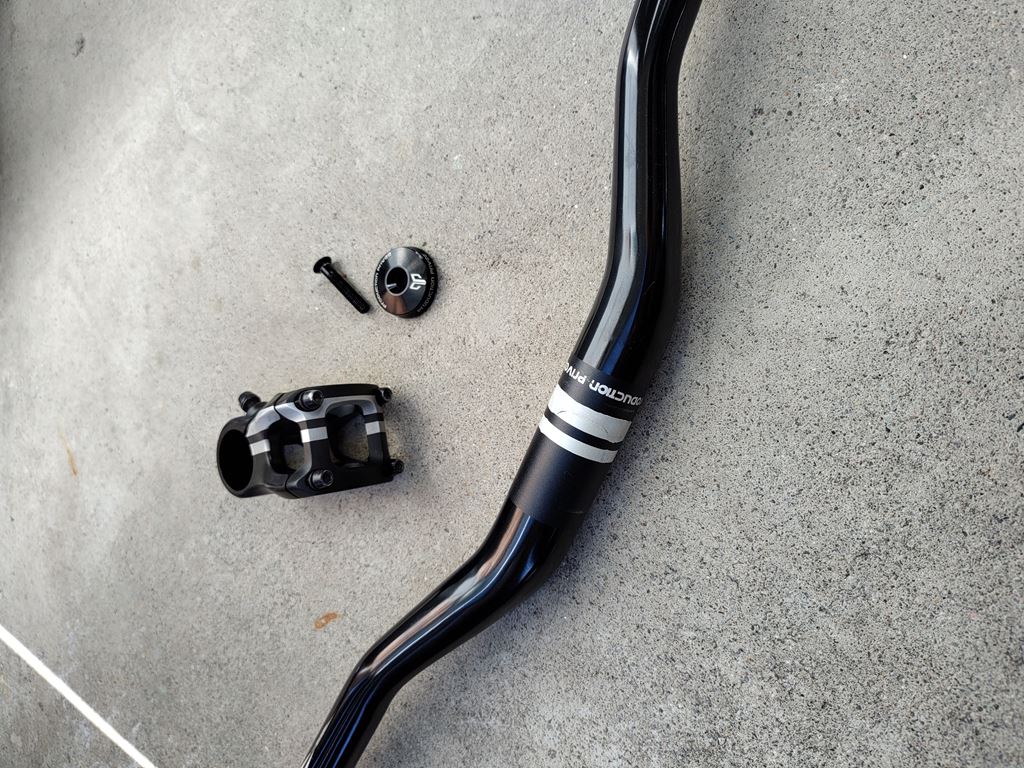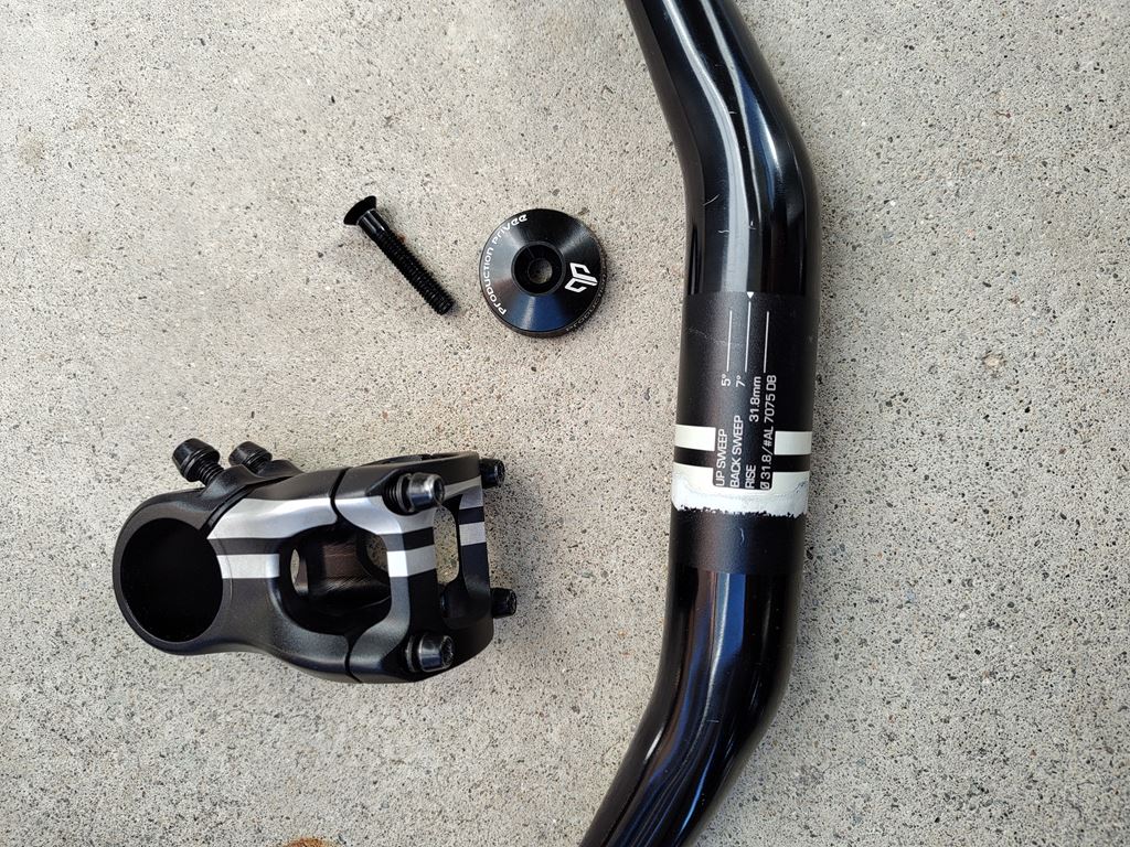 - Gebrauchtes Cockpit von Production Privee zu verkaufen Vorbau: R2R Black (50mm) Lenker: LGMH ? 1.25 black (gekürzt auf 760 mm) Top Cap: LBS 5mm