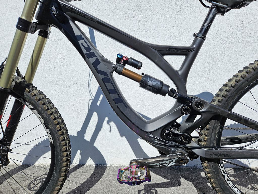 Verkaufe ein Pivot Phoenix DH Carbon mit BOS Idylle Gabel und Fox Float X2 Factory Dämpfer, Rahmengrösse M gebraucht. Das Bike ist technisch in einwandfreiem Zustand. Der Rahmen hat keine Risse, jedoch ein paar leichte Gebrauchtspuren (kleine Kratzer). Details Rahmengrösse: M Rahmen: Carbon Hollow Core Internal Molding Technologie, Travel 204mm (DW-Link) Farbe: Schwarz matt Gabel: BOS Idylle Rare Air FCV Fork 27.5”; 37mm; 208mm Dämpfer: Fox Float X2 Dämpfer mit Evol Luftkammer Schaltwerk: Shimano Zee RD-M640 10-fach Schalthebel: Shimano Zee SL-M640, 10-fach Schaltsystem Kurbelgarnitur: Shimano Zee FC-M645 (36 Z.) Bremsen: Shimano BR-M640 4-Kolben, 203mm Rotor vorne & hinten Laufräder: Spank Spike 28 Race (27,5 Zoll) Pedale: ohne (nicht inkludiert) Lenker: Spank Spike alu Vorbau: Spank alu Sattel: Morewood Sattelstütze: Morewood, Aluminium Griffe: Lizard Skins Lock-on