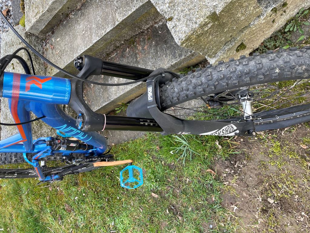 - -Solider Alu-Rahmen, 18“ (ich bin 1.78m), 160/150 cm Federweg (v/h) -Aufrüstung auf Shimano Saint (mit 203mm Bremsscheiben) -Pedale inkl. (Crank Brothers, Stamp) -RockShox Pike mit Travel-Funktion (kann bergauf abgesenkt werden) -komplett Shimano XT, 2x11 -RockShox reverb stealth Sattelstütte Das Bike wurde gut und regelmässig gepflegt und gewartet, normale Gebrauchsspuren sind vorhanden (einige Kratzer, keine heftigen Stürze). Auch an den Tauchrohren der Gabel gibt es 2-3 kleine, oberflächliche Kratzer, welche ich mit einem Reparatur-Kit bearbeitet habe (schleifen und auffüllen mit 2-K Harz, polieren), wonach kein Ölaustritt festgestellt wurde. Die Lager der Schwinge wurden auch mal ausgetauscht. Aktuell ist das Bike gute 1,5 Jahre nicht gefahren worden (neues Bike gekauft), ein Service wäre wohl fällig.