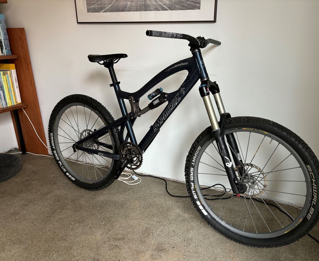 - Santacruz Nomad – die Originalversion des Enduro-Bikes aus Aluminium, mit 26" Radgrösse und 160mm Federweg. Die damalige Geometrie war sehr viel kompakter, und ist heute eine gute Option für Kinder/Jugendliche. Verkaufe das Rahmenset mit Dämpfer, Gabel, Mavic CrossMax Radsatz, Steuersatz, Vorbau/Lenker, Tretlager, Kurbel und Sattelstütze/Sattel.