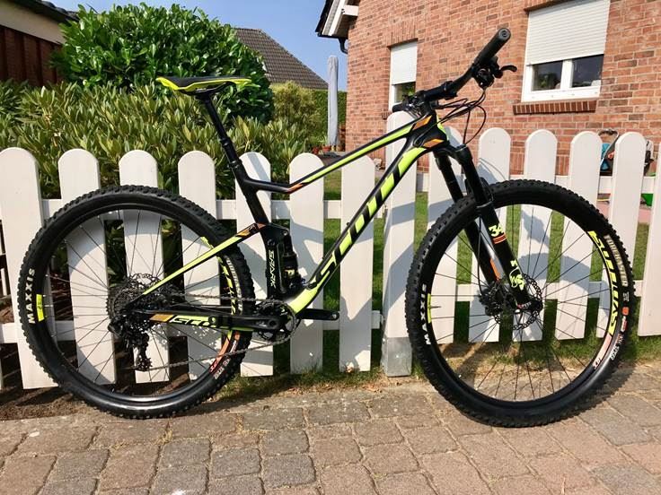- Du suchst nach einem XC Bike im Weltcup-Stil, aber zu einem Bruchteil des üblichen Preises? Dann hast du es im Spark 930 gefunden. Dieses Bike vereint die federleichte Linienführung eines puren Rennbikes mit den Singletrack-Spass eines 120-mm-Federwegs und ist bereit für alles. Mit dem neu gestalteten Spark-Rahmen, einem SRAM GX 1×11 Antrieb und Syncros Komponenten sprühen die Funken. Modelljahr: 2017 Rahmengröße: L Gewicht: 12,3kg Rahmen: Spark 3 Carbon / IMP Technology / HMF Mainframe / BB92 / Alloy SL 6011 swingarm / SW Dropouts for Boost 12x148 mm / TBC Trunnion box construction / custom Chainguide Steuersatz: Syncros Pro Drop in / Tapered 1.5 inch - 1 1/8 inch / bearing diameter size 42 mm and 52 mm Gabel: FOX 34 Float Performance Air / Grip 3 / 3-Modes / 15x110 mm QR axle / Tapered Steerer / Rebound Adjustment / Lockout / 120 mm Travel Federweg vorn: 120 mm Dämpfer: FOX Nude Trunnion Scott custom w. travel / geo adj. 3 modes: Lockout, Traction Control, Descend DPS / EVOL / Reb. Adj. Travel: 120 mm, 85 mm, Lockout / 165x45 mm Federweg hinten: 120 mm Laufradgröße: 29 Felgen: Syncros 3.0 / 28H / Tubeless Ready Felgenmaterial: Aluminium Nabe vorn: Syncros 3.0 / TC-711 / 15x110 mm / made by Formula Nabe hinten: Syncros 3.0 / TC-14811 / Boost 148x12mm RWS axle / XD / made by Formula Kurbelsatz: SRAM Custom GX1 GXP Boost PF / 700 Series: 32T / 900 Series: 30T