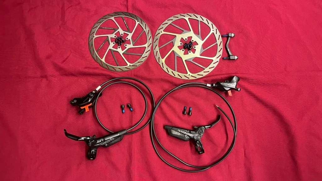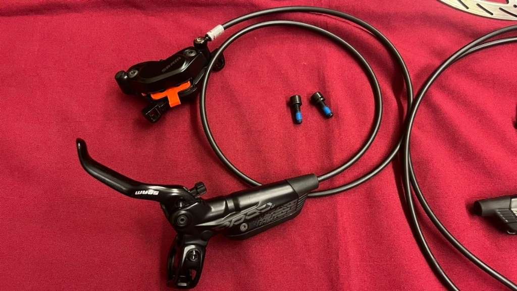 - SRAM Code R Bremsen Komplettsatz, von 1 Monat altes Rad abmontiert, 228km gefahren. Keine Kratzer, keine Schäden, Zustand wirklich wie neu. Bremsleitung vorne 81cm, hinten 142cm. Auf Wunsch mit Schalthebel-Adapter (Matchmaker).