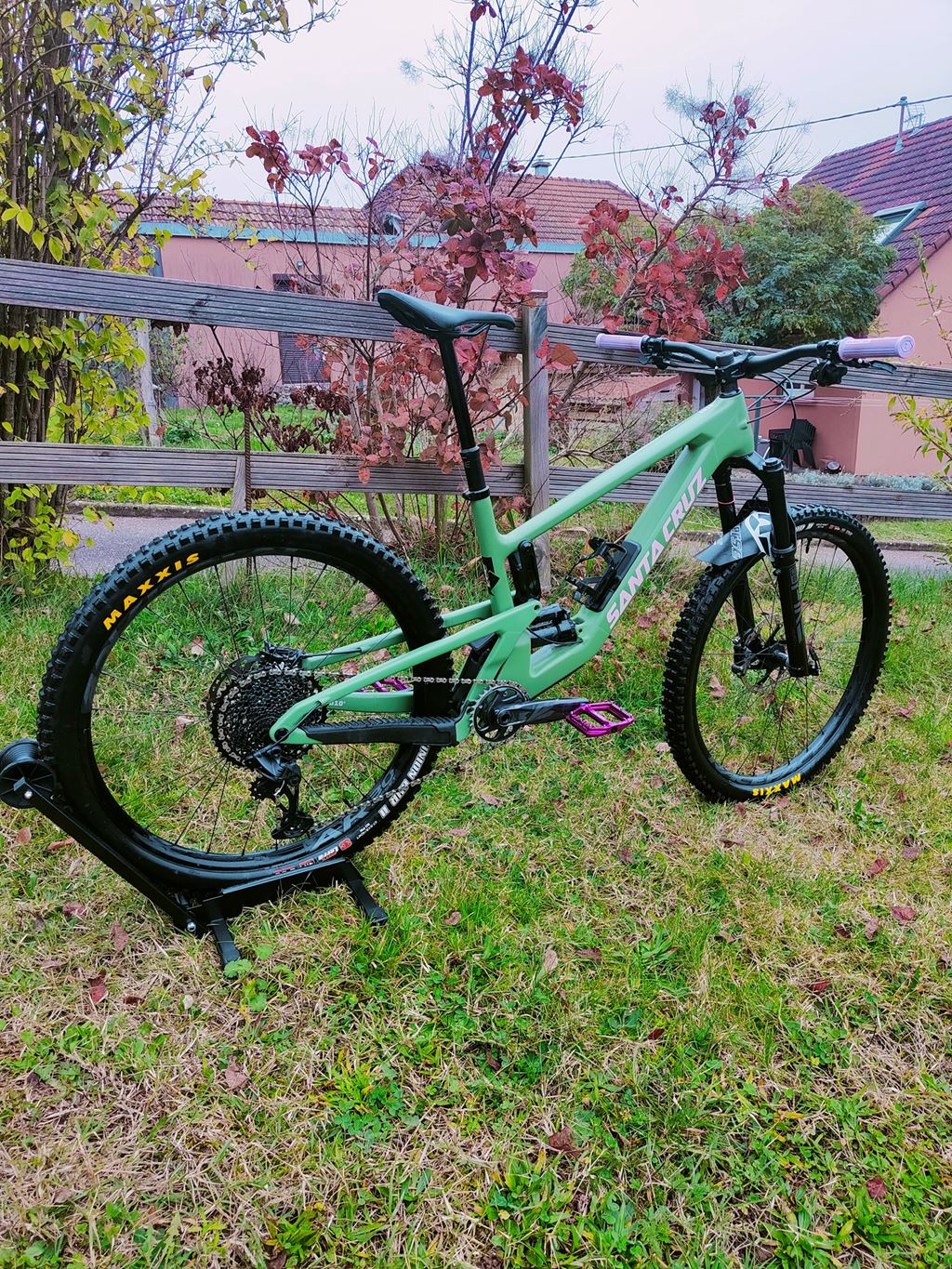 - Zu verkaufen: Santa Cruz 5010 S-Kit, Größe L, in gutem Zustand. Der Rahmen wurde vor der ersten Ausfahrt mit einem vollständigen Schutzkit von Slicy versehen und ist daher sehr gut erhalten. Das Bike ist technisch in einwandfreiem Zustand. Es sind lediglich ein paar Gebrauchsspuren an den Laufrädern sichtbar, die durch normale Nutzung entstanden sind. Laut Santa Cruz eignet sich Größe L für Fahrer*innen zwischen 175 und 185 cm. Ausstattung: Federgabel: RockShox Pike Select+ 140 mm (Low- und High-Speed-Compression einstellbar) Dämpfer: RockShox Super Deluxe Select+ 130 mm Laufräder: Race Face AR30 Antrieb: SRAM GX Lunar, 12-Gang Bremsen: Shimano XT, 4-Kolben Lenker: Burgtec 760 mm Vorbau: Burgtec 42,5 mm Griffe: Burgtec Josh Bryceland Edition Sattelstütze: OneUp 180 mm Sattel: Original WTB Reifen: Maxxis Minion DHF 2.4 Exo 3C & Schwalbe Eddy Current Rear 2.5 Wird ohne Pedale und ohne Flaschenhalter verkauft. Versand ist möglich, die Kosten trägt der Käufer.
