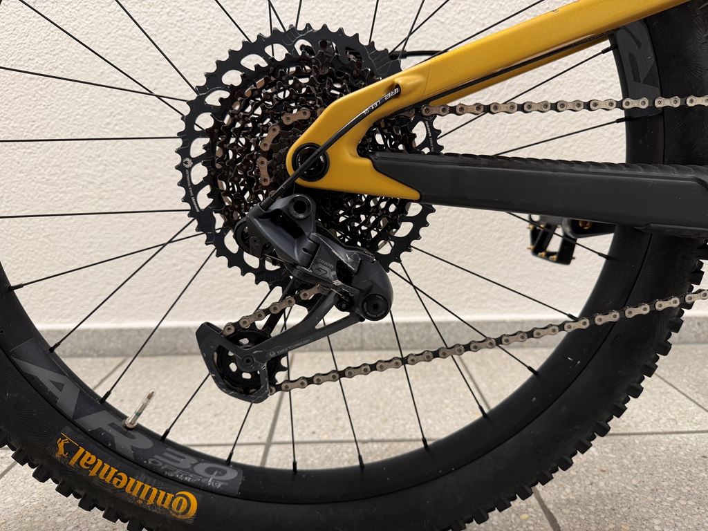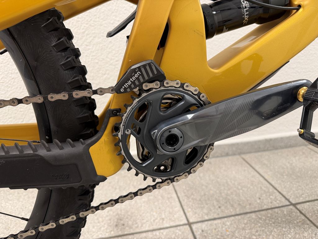 - Santa Cruz Bronson Ausstattung: * Rahmen: Santa Cruz Bronson C Carbon (Mullet - 29" / 27.5") * Schaltgruppe: SRAM GX 12-fach * Fahrwerk: RockShox Lyrik Select & RockShox Deluxe Select Plus 160 und 150 Federweg) * Bremsen: Shimano Deore XT (4-Kolben) * Teleskopstütze: RockShox Reverb * Laufräder: Raceface AR30 Offset * Cockpit: Burgtec / Deity * Kette: SRAM * Zustand: sehr gepflegt * Rahmenschutzfolie * e*thirteen Naben * e*thirteen Kettenschutz * ohne Pedale * Frisch ab Service inkl. Fahrwerk