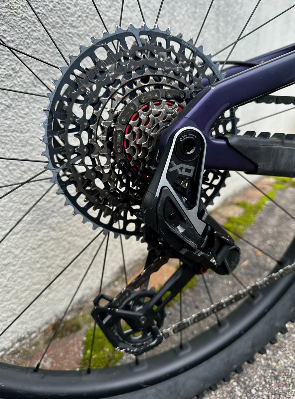 - Carbon CC Rahmen Fox 36 Float Factory Federgabel FOX Float X Factory Dämpfer SRAM X0 Eagle AXS Transmission Antrieb Reserve 30|HD Carbon Laufräder Farbe: Matte Deep Purple | Größe:L (5'9" - 6'1" / 175 - 185cm) Das Velo ist im TOP-Zustand - Es wurde nur wenig bewegt, dennoch komplett frisch geserviced und Rahmen als auch Gabel waren von Beginn an komplett abgeklebt (RideWrap). Gesamtspezifikationen: Gabel - Fox 36 Float Factory, Grip X2, 160mm Dämpfer - FOX Float X Factory, 230x57.5 Tretlager - SRAM DUB 73mm MTB Wide BB Kassette - SRAM X0 Eagle T-Type, 10-52t Kette - SRAM X0 Eagle T-Type, Flattop, 12spd Kurbel - SRAM X0 Eagle DUB T-Type Crankset, 32t Schaltwerk - SRAM X0 Eagle AXS T-Type, 12spd Schalthebel - SRAM AXS Pod Controller Rocker Paddle Bremsen - SRAM Maven Silver Stealth Griffe - Santa Cruz Bicycles House Grips Lenker - Santa Cruz 35 Carbon Bar, 760mm Steuersatz - Cane Creek 40 IS Integrated Headset Sattel - WTB Silverado Medium Fusion, CroMo SL Sattelstütze - OneUp Dropper Post, 31.6, 210 mm Vorbau - Burgtec Enduro Stem, 42mm Felge vorne - Reserve 30|HD Carbon Nabe vorne - Industry Nine 1/1, 15x110, 6-Bolt, 28h Vorderreifen - Continental Kryptotal DH, SuperGrip Felge hinten - Reserve 30|HD Carbon Nabe hinten - Industry Nine 1/1, 12x148, XD, 6-Bolt, 28h Hinterreifen - Continental Kryptotal DH, SuperGrip Ventile - Reserve Fillmore Valves