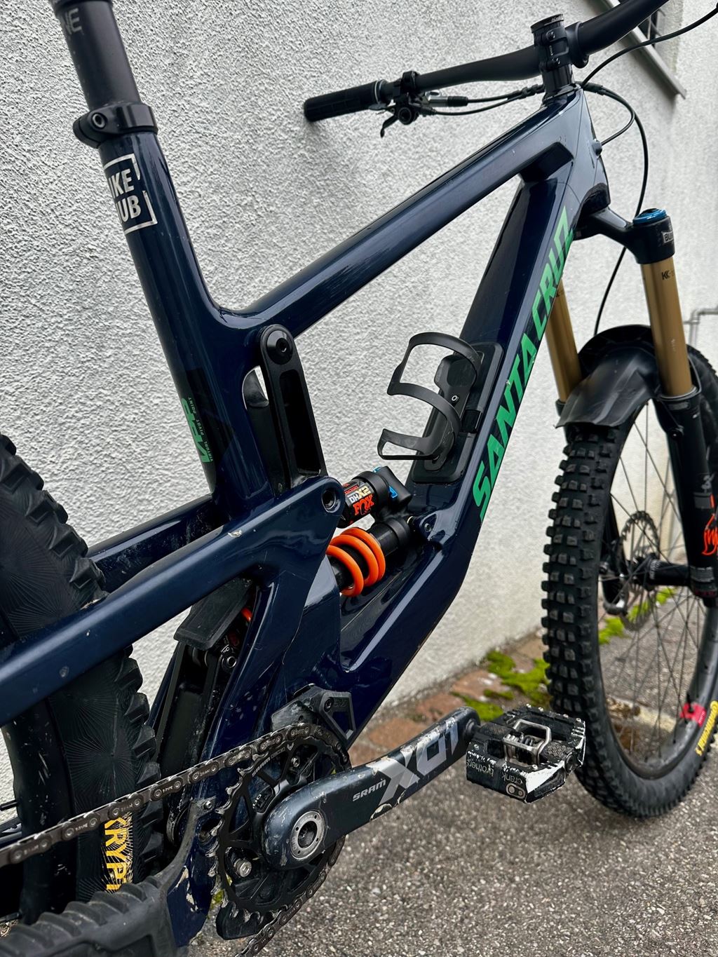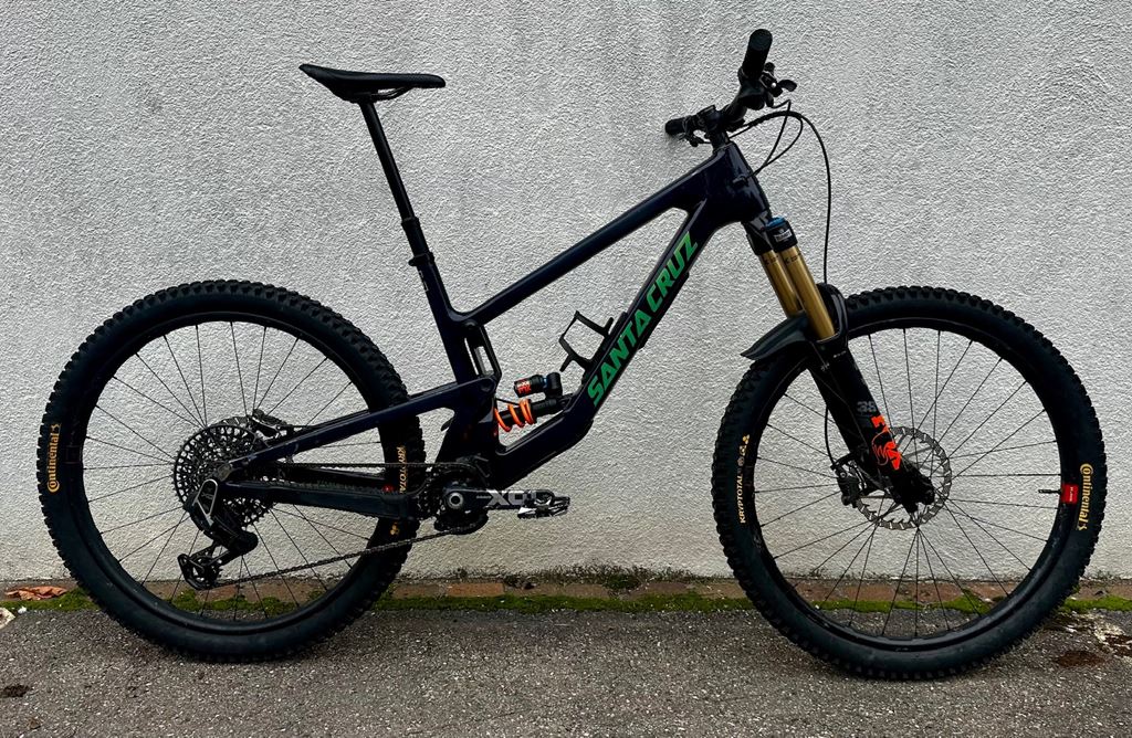 - Carbon CC Rahmen Fox 38 Float Factory 170mm Federgabel FOX Float DHX2 Factory Dämpfer SRAM X0 Eagle AXS Transmission Antrieb !!! Reserve 30|HD Carbon Laufräder Farbe: Translucent Blue | Größe: XL Das Velo ist im TOP-Zustand - Es wurde komplett frisch geserviced, alle Verschleissteile ersetzt und Rahmen als auch Gabel waren von Beginn an komplett abgeklebt (RideWrap). SRAM X0 Eagle AXS Transmission kürzlich erst nachgerüstet - Max. 5x gefahren... Gesamtspezifikationen: Gabel - Fox 38 Float Factory, 170mm Dämpfer - FOX Float DHX2 Factory 230x62.5 Tretlager - SRAM DUB 73mm MTB Wide BB Kassette - SRAM X0 Eagle T-Type, 10-52t Kette - SRAM X0 Eagle T-Type, Flattop, 12spd Kurbel - SRAM X1 Carbon Eagle 148 DUB, 32t Schaltwerk - SRAM X01 Eagle AXS T-Type, 12spd Schalthebel - SRAM AXS Pod Controller Rocker Paddle Bremsen - SHIMANO XTR Griffe - DEITY Lenker - Santa Cruz 35 Carbon Bar, 780 mm Steuersatz - Cane Creek 40 IS Integrated Headset Sattel - WTB Silverado Medium Fusion, CroMo SL Sattelstütze - OneUp Dropper Post, 31.6, 210 mm Vorbau - BIKE YOKE Barkeeper, 45mm Felge vorne - Reserve 30|HD Carbon Nabe vorne - Industry Nine 1/1, 15x110, 6-Bolt, 28h Vorderreifen - Continental Kryptotal DH, SuperGrip Felge hinten - Reserve 30|HD Carbon Nabe hinten - Industry Nine 1/1, 12x148, XD, 6-Bolt, 28h Hinterreifen - Continental Kryptotal DH, SuperGrip
