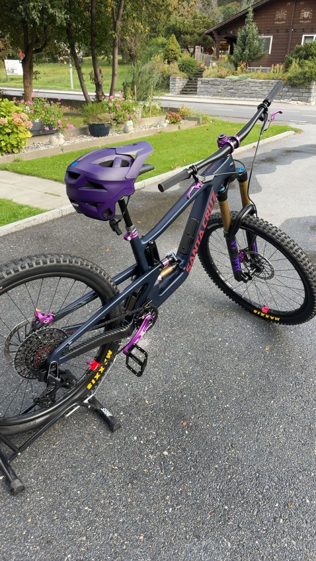 - Santa Cruz Nomad CC 2024 – High-End Custom Build – Nur 1x gefahren Neuwertiger Zustand. Originalrechnung vorhanden – wird bei Besichtigung oder auf Anfrage vorgelegt. Ich verkaufe hier mein Santa Cruz Nomad CC 2024, komplett custom aufgebaut nach meinen Wünschen. Das Bike wurde 2024 neu bei Rodeo Bike Co. gekauft und nur 1x gefahren – absolut neuwertiger Zustand. Grund für den Verkauf: Ich besitze noch ein zweites Bike und brauche dieses Schmuckstück schlicht nicht. Custom Setup (Top Komponenten) • Rahmen: Santa Cruz Nomad CC Carbon – 2024 • Gabel: Fox 38 Factory Kashima • Dämpfer: Fox Float X2 Factory Kashima • Laufräder: Santa Cruz Carbon Felgen (bombenstabil & super leicht) • Schaltung: SRAM GX Eagle AXS – kabellos • Sattelstütze: SRAM Reverb AXS – kabellos • Bremsen: TRP Dominion – limitierte Edition in Violett (extrem selten!) • Kurbel: HOPE – hochwertig & leicht • Pedale & Vorbau: Burgtec – in passender, edler Farb-Kombi • Reifen: Maxxis – neuwertig Damit hast du ein extrem cleanes Cockpit: nur 2 Bremsleitungen, sonst alles wireless. Das Bike ist optisch und technisch ein absolutes Premium-Gerät, perfekt für Enduro, Bikepark und harte Trails.