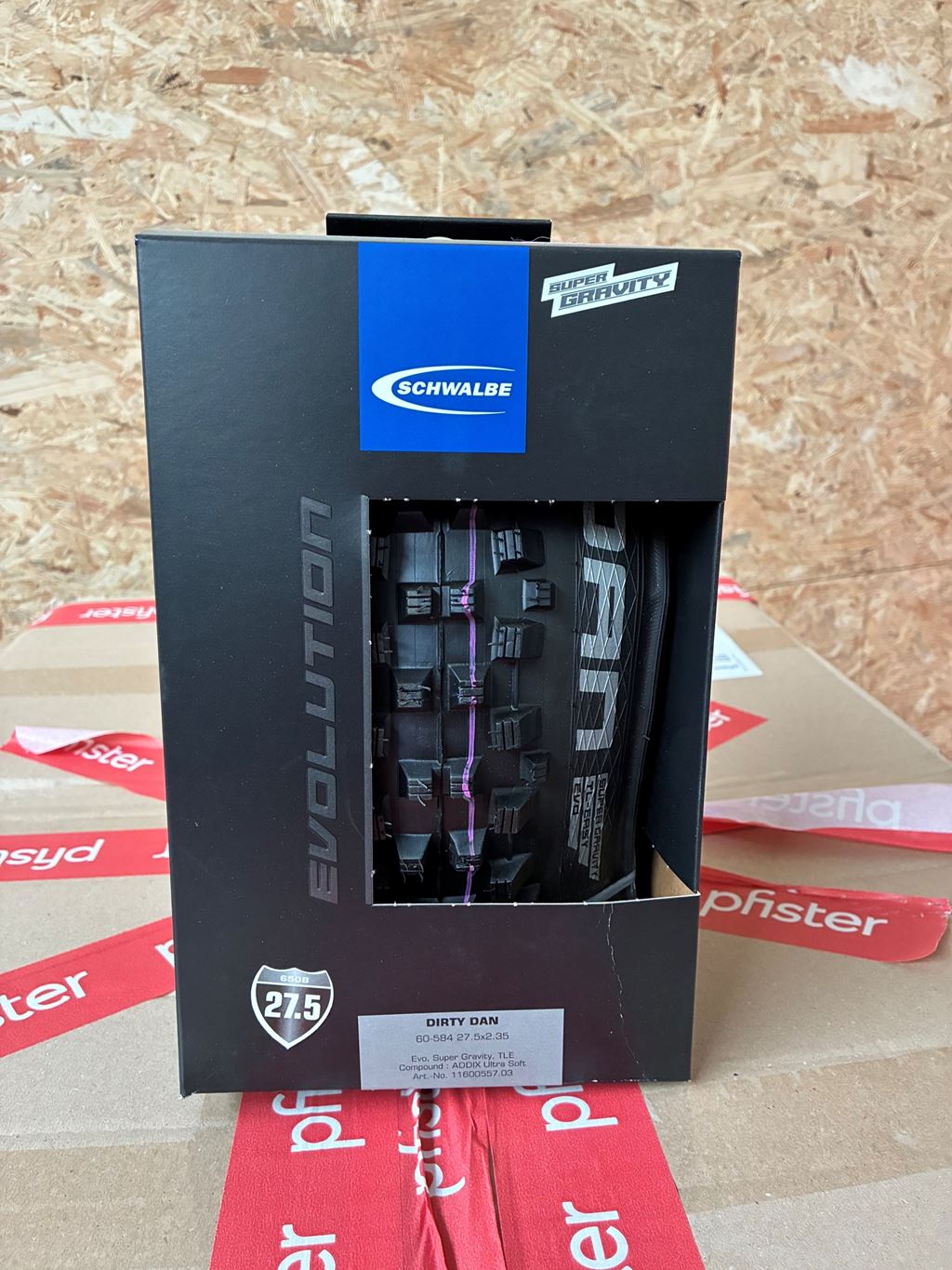 - Verkaufe hier einen neuen und ungefahren Schwalbe Dirty Dan Reifen. 1 Jahr alt. 27.5'' x 2.35 Super Gravity Evo & TLE Addix Ultra Soft 11600557.03 Preis VHB