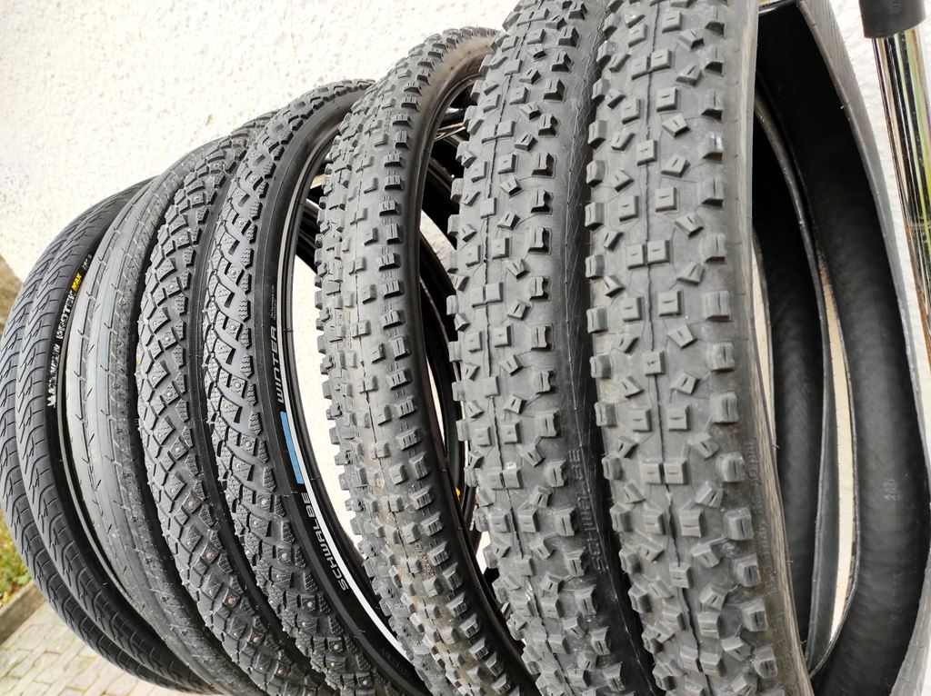- Fahrrad Reifen Konvolut - 5 Paar Lot de 5 paires de pneus de vélo Für Mountainbike / trekking / touring 2x Schwalbe Hans Dampf EVO TLE Addix Falt 60-559 / 26x2.35" - neuwertig > 90 % 2x Schwalbe Nobby Nic EVO Faltreifen 57-559 / 26x2.25" - sehr gut > 80% 2x Schwalbe Marathon Winter mit Spikes 50-559 / 26x2.00" - 1x neu und 1x 80% 2x Maxxis Detonator - Drahtreifen 40-559 / 26x1.50" - neuwertig > 90% 2x Michelin PROTEK MAX Reflex Drahtreifen 35x559 / 26x1.40" - beide 70% Bereich: MTB crossbike citybike ATB cross country touring trekking VTT E-Bike Zustand : gemäss Beschreibung Abholung bevorzugt Versandkosten CHF 20.00 TWINT Zahlung möglich Preis gilt für alle Pneu zusammen Beachten Sie weitere Angebote von style bikes - Rennvelo - citybike Mountainbike - Fahrrad Zubehör & Ersatzteile. veloreifen fahrradpneu pneu tires trek fahrradreifen pneumatici bixs kettler bulls canyon wheeler cube specialized giant focus racer price ktm centurion scott Cannondale orbea Stevens univega haibike gt norco radon ghost allegro cilo continental vittoria pirelli mbk felt niner kenda Bontrager bergamont Merida TDs cycletech centurion tour de Suisse