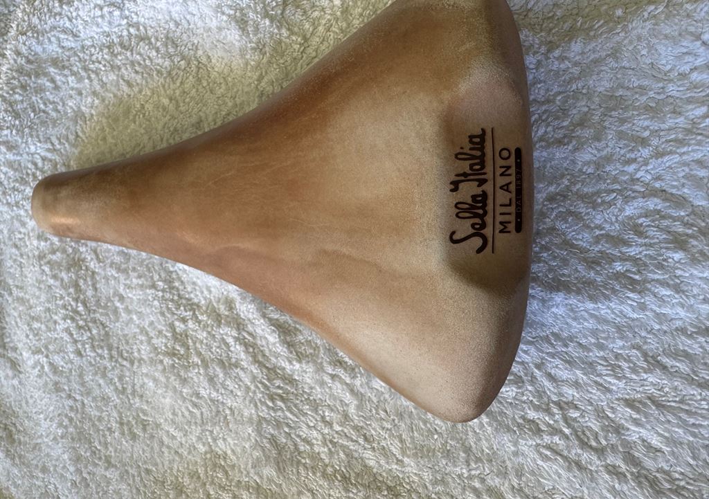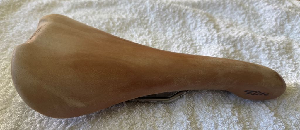 - Selle Italia Flite Sattel mit Echtlederüberzug und Titangestell. Breite L1, 146 mm. Farbe braun.