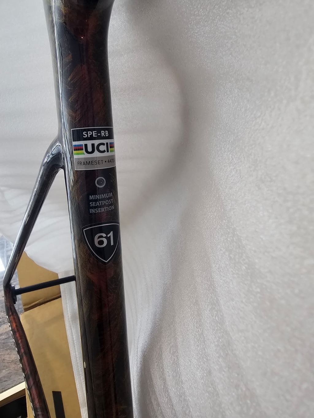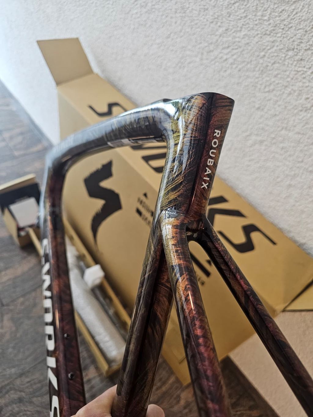 - Ich verkaufe einen brandneuen S-Works Roubaix SL8 Rahmen (nie gefahren / nie aufgebaut) Farbe: Gloss Carbon / Red to Gold und Solidity Dry Brushed / Dune White Der Rahmen ist völlig neu und unbenutzt, da ich nie dazu gekommen bin, ihn zusammenzubauen, da ich in andere Projekte/Bauvorhaben investiert habe. Größe 61, ideal für Radfahrer zwischen 1,88 m und 1,96 m (6'2"–6'5"). Dies ist der Spitzenrahmen S-Works von Specialized, geeignet für: Ausdauerfahrten Bikepacking Sehr vielseitig einsetzbar, sowohl auf der Straße als auch im Gravel-Bereich, mit einem auf Komfort ausgelegten Design 🔧 Reifenfreiheit: bis maximal 40 mm 📄 Rechnung inklusive, mit 1 Jahr verbleibender Garantie. Preis des Rahmens auf der Specialized-Website: 4.499 CHF