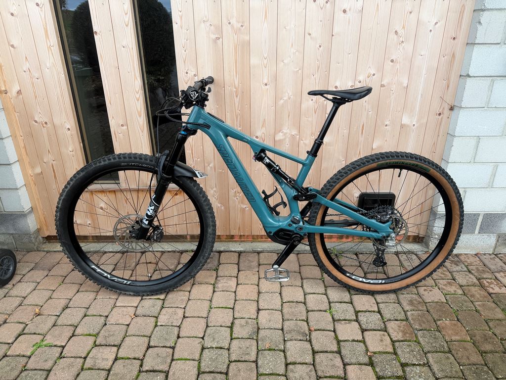 - Top gepflegtes Bike gefahren von einer Frau. Alle Services & Updates durch den Fachmann durchgeführt. Bereifung kann auf Wunsch angepasst werden auf Normal oder Skinwall Vorne & Hinten. Farbe: Dusty Turquoise / Black Rahmengrösse: S3 / M-L Motor: Specialized SL 1.1, custom lightweight motor Akku: Specialized SL1-320, fully integrated, 320Wh Display/Lenkerfernbedienung Specialized TCU, 10-LED State of charge, 3-LED Ride Mode display, ANT+/Bluetooth®, w/Handlebar remote Kabelbaum: Custom Specialized wiring harness w/ chargeport Ladegerät: Custom charger, 48V System w/ SL system charger plug Rahmenset Rahmen: Specialized M5 Premium Aluminum, 29 Trail Geometry, integrated down tube battery, enclosed internal cable, Command Post routing, 148mm spacing, fully sealed cartridge bearings, 150mm of travel Sattelklemme: Specialized bolt-type, alloy, 38.6mm Gabel: FOX RHYTHM 34 FLOAT 29, GRIP damper, 51mm offset, 2-position sweep adjust, 15x110mm, tapered alloy steerer, 150mm of travel Fahrwerk Dämpfer: FOX FLOAT DPS Performance, 3-position adjustment, 52.5x210mm, Rx Trail Tune Bremsen Vorderradbremse Shimano XT, hydraulic disc, 200mm Hinterradbremse Shimano XT, hydraulic disc, 180mm Antrieb Schalthebel: SRAM NX Eagle, trigger, 12-speed Schaltwerk: SRAM NX Eagle, 12-speed Kassette: SRAM NX Eagle, 12-speed, 11-50t Kette: SRAM NX Eagle, 12-speed Kurbelgarnitur Praxis Forged/M30 Spindle Interface Kettenblätter: SRAM X-Sync Eagle, 94 BCD, 30T Laufräder Felgen: Specialized 29, hookless alloy, 30mm inner width, tubeless ready Vorderradnabe Specialized, sealed cartridge bearings, 15x110mm spacing, 28h Hinterradnabe Specialized, sealed cartridge bearings, 12x148mm thru-axle, 32h Speichen DT Swiss Industry Vorderreifen Butcher, GRID TRAIL casing, GRIPTON® compound, 29x2.3" Hinterreifen Eliminator, GRID TRAIL casing, GRIPTON® compound, 2Bliss Ready, 29x2.3" Schläuche Standard, Presta valve Cockpit Vorbau Specialized Trail, 3D-forged alloy, 4-bolt, 6-degree rise Lenker Specialized Trail, 6061 alloy, 8-degree backsweep, 6-degree upsweep, 27mm rise, 31.8mm clamp, XS 750mm, S-XL 780mm Lenkergriffe Specialized Trail Grips Sattel Bridge Comp, Hollow Cr-mo rails, 155/143mm Sattelstütze X-Fusion Manic, infinite adjustable, two-bolt head, bottom mount cable routing, remote SRL LE lever, 34.9mm, XS:100 mm, S: 125mm, M/L: 150mm, XL:170mm of travel Zubehör SWAT Swat CC Multi Tool in steerer tube without Chaintool Gefahrene Kilometer: 5366