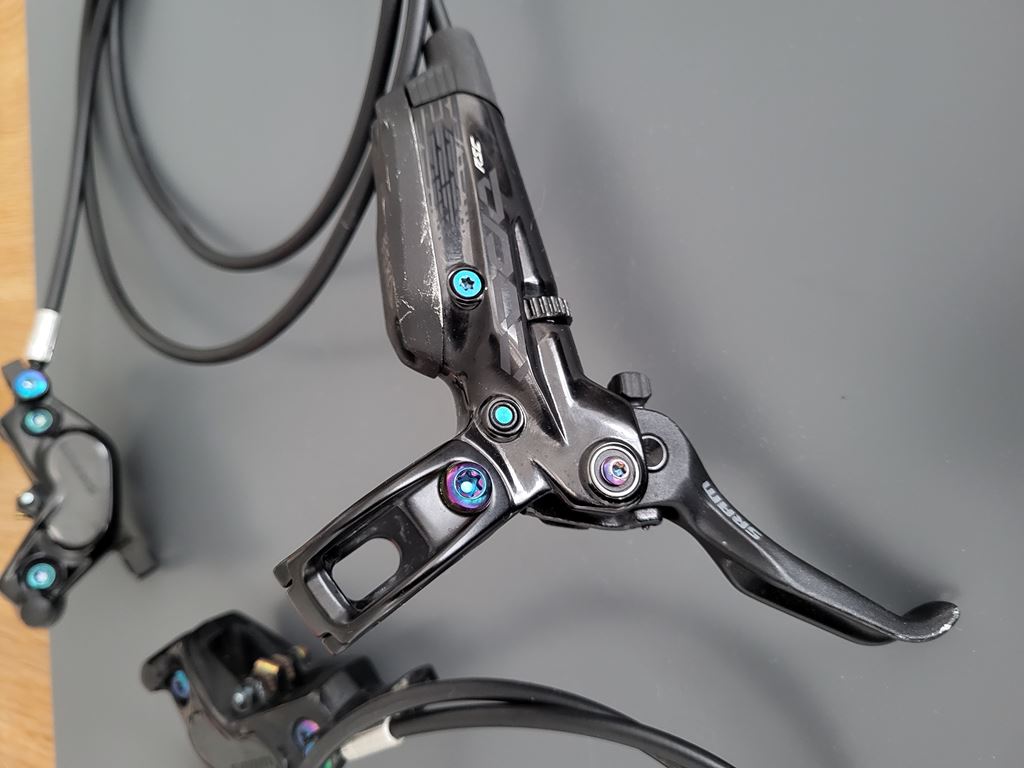 - Sram Code RSC MTB-Bremssättel (Paar) Bremsleitung vorne: 75 cm Bremsleitung hinten: 149 cm Guter Zustand, Bremsbeläge zu 50 % abgenutzt. Klemmen im Lieferumfang enthalten. HS2-Bremsscheiben 180 mm. Versand möglich.
