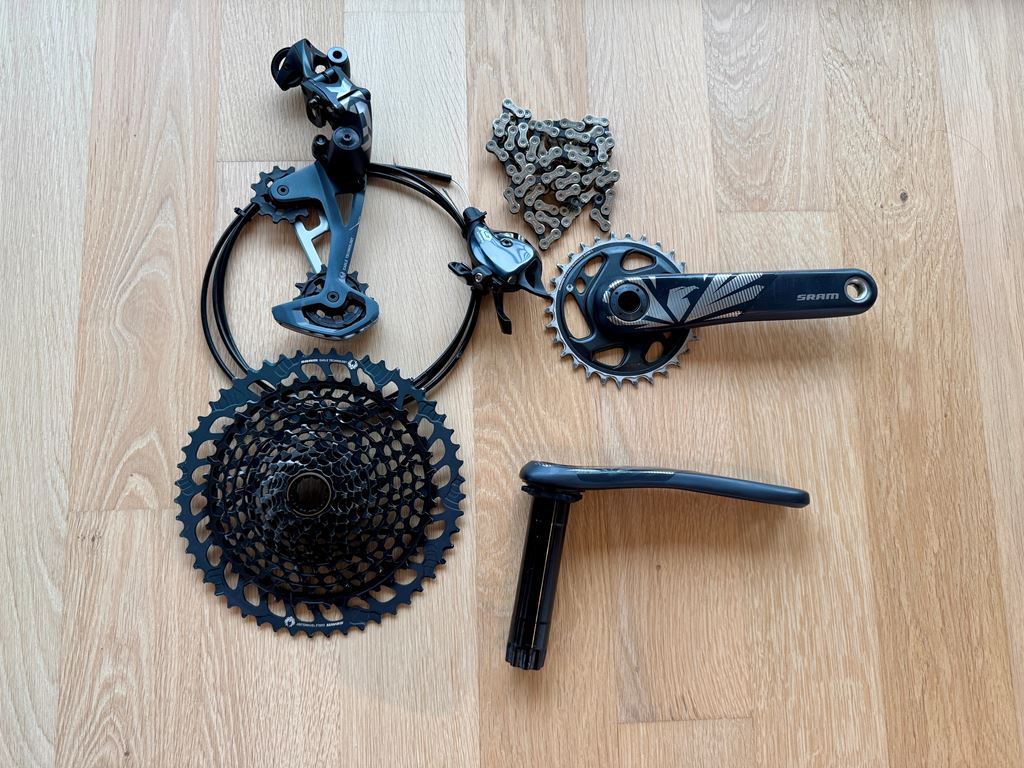 - Verkaufe meine komplette Sram Schaltgruppe. War an einem Yeti SB160 montiert. Wurde weniger als 1 Woche gefahren, daher in einem sehr guten Zustand. Kurbel auf der Antriebsseite und Schaltwerk haben leichte Kratzer. Schaltwerk: Sram X01 12-Fach Kassette: Sram X01 12-Fach 10-52 Schalthebel: Sram GX Kurbel: Sram Carbon, 170mm mit 30T Ritzel Kette: Sram GX 12-Fach Bei Interesse auch gerne per WhatsApp erreichbar +41(0)792958232