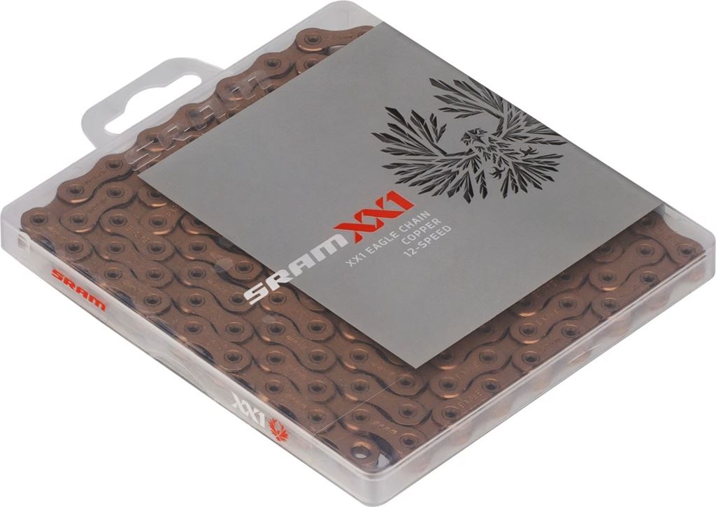 - SRAM XX1 Eagle 12-fach Kette Kupfer Cooper Herstellernummern: 00.2518.043.010 Zustand: Neu Originalverpackt Lieferumfang: 1 x Kette SRAM PC XX1 Eagle 1 x Kettenschloss SRAM PowerLock