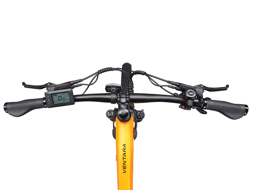 - VTT avec moteur électrique et suspension avant Saisissez ce VTT de VENTARA et pédalez en toute décontraction à travers la nature grâce à l'assistance électrique au pédalage. Lors de la conduite sur des terrains accidentés, la fourche à suspension robuste absorbe les chocs de manière optimale. De plus, des freins à disque hydrauliques et une transmission Shimano assurent une progression confortable et sûre sur tous les terrains. Les réglages des fonctions peuvent être effectués par simple pression sur un bouton de l'écran convivial. Roulez à toute vitesse par monts et par vaux avec ce vélo électrique chic à moteur électrique! Robuste VTT électrique AVALANCHE Pour une conduite confortable sur les terrains vallonnés Parfait pour les randonnées hors des routes goudronnées Assistance électrique au pédalage jusqu'à 25 km/h Batterie puissante assurant une autonomie respectable Ordinateur de bord convivial avec écran LCD Transmission Shimano à huit vitesses Freins à disque hydrauliques pour un freinage puissant Jantes en aluminium à double paroi Qualité de marque de VENTARA Données techniques: Matériau du cadre: aluminium Couleur: jaune (selon illustration) Taille du cadre: 47 cm Taille des roues: 29" Débattement: 12 cm Dérailleur: Shimano M315, 8 vitesses Largeur des pneus: 6 cm Freins: freins à disque hydrauliques, Tektro E3520 Puissance du moteur: 250W / 50 Nm Moteur: moteur arrière Ananda Poids: 24 kg Batterie: 36V / 11.6 Ah Temps de charge: 6 - 7 heures Autonomie: 60 - 70 km (dans des conditions idéales) Capacité de charge maximale: 120 kg Contenu de la livraison: 1 x E-Bike avec batterie 1 x chargeur 1 x écran