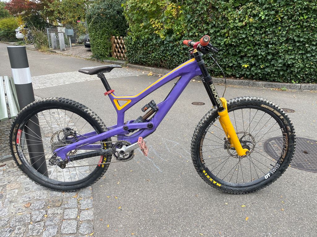 - Gebe mein geliebtes Downhillbike weg. Der Rahmen wurde selber angesprayed. Vorher hatte das bike einen schwarz/weissen Paintjob. Beim ansprayen wurde aalles schön angeschliffen und darauf geachtet dass das Carbon dabei nicht verletzt wird. Der Rahmen ist auch mit schutzfolien abgeklebt und hat schon mehrere Bikeparkbesuche überlebt. Rahmen : YT Tues CF 2017 Gabel : Rock Shox Boxxer (vom Vorgänger getunet) Dämpfer : Fox Float X2 Kashima Bremse Vorne : Shigura (Magura Hebel und Shimano Saint Bremskolben) Bremse Hinten : Magura Mt5 Schaltung : Sram GX 9fach Laufradsatz : DT Swiss FR570 Das Bike kann gerne in Zürich besichtigt werden